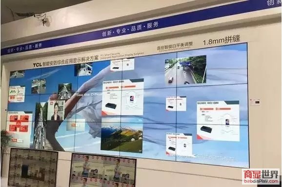 TCL最新的,市面上最窄拼缝的大屏拼接产品1.8mm,该产品采用TCL自主研发的具有自主知识产权的三大画质校正技术,使TCL大屏拼接产品能够给用户带来整墙如一的画质体验。