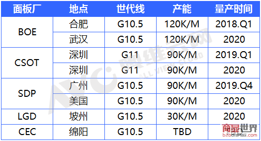 从2018年BOE率先量产后开始,未来全球陆续将还有7条10.5代线逐步进入量产。可以说随着今日BOE 10.5代线投产,全球新增产线将正式步入10.5代线时代。