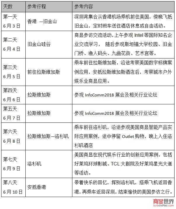 ¸½¼þ2¡¢²Î·ÃInfoComm USAÕ¹»áºÍÃÀ¹úÖÇ»ÛÉÌÏÔ²úÒµÉÌÎñ¿¼²ìÍÅÐÐ³Ì ![]() £¨×¢£ºÒÔÉÏÐг̽öΪÔݶ¨Ðг̣¬½ìʱÁì¶Ó¿ÉÄÜ»áÊÓʵ¼ÊÇé¿ö¶ÔÐгÌÉÔ×ö¸ü¸Ä£©