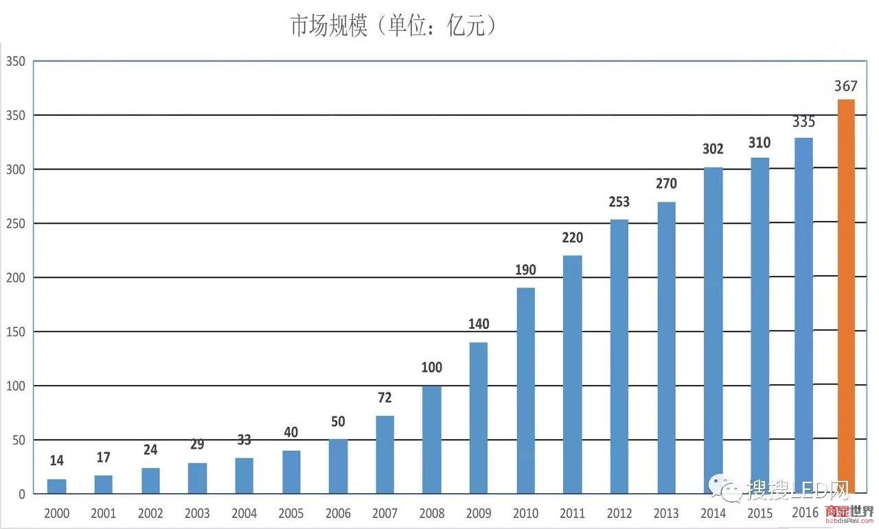 今年小间距保持去年的高增长态势,仍以50%以上的增长速度渗透市场;透明屏市场规模较之去年有所扩大;传统常规屏市场也形势良好,有的企业甚至重启关掉的直插屏生产线。我国LED显示屏企业在深耕国内市场的同时,拓展外海市场的力度不断加大。总体上,2017年我国LED显示行业总产值预估367亿元左右,相较去年增长32亿元左右,全年行业增长率预估将达到9.5%左右。