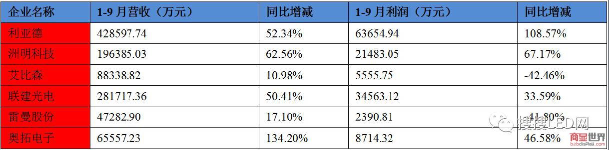从今年前三季度各大LED显示屏企业销售状况看,2017年各大上市企业都获得了快速的增长,销售额绝大多数都较往年有大幅增长,个别企业甚至翻了一翻,虽受涨价影响,但企业随着经营的多元化,依然实现了利润的高增长,如利亚德前三季同比增长了108.57%,洲明科技也增长67.17%,联建光电33.59%。
