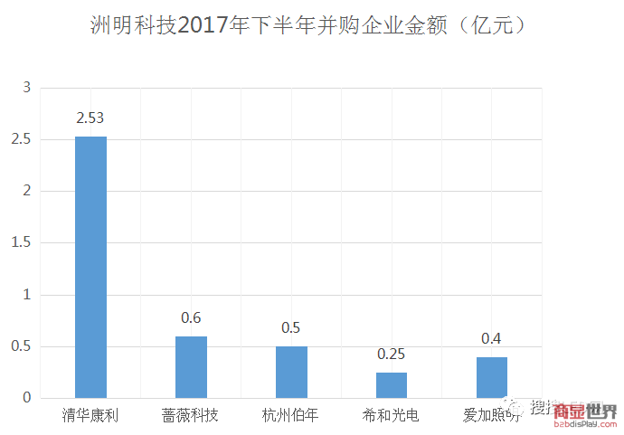 国内并购则显得异常活跃 ,以洲明科技为例,仅2017年下半年,其便发起了数起并购。