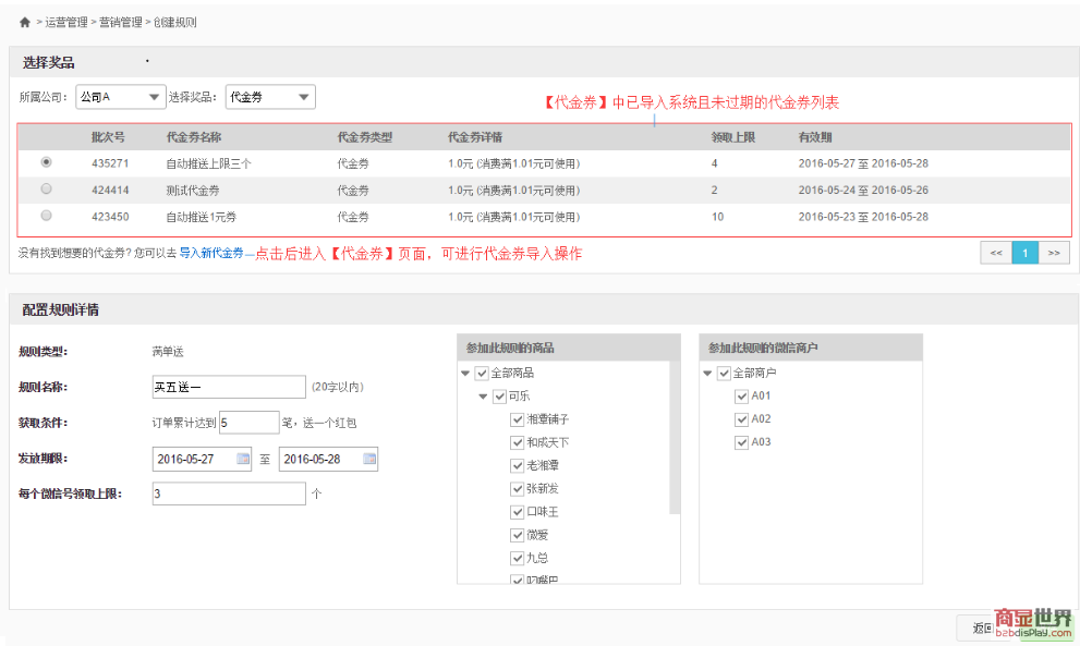 ➢营销活动:运营商可以利用该模块设置会员等级,并制定有针对性的优惠措施提高销量。主要用于设定会员的等级以及设定一些优惠方式。