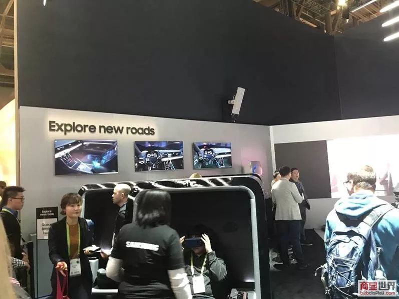 与大部分展商不同,三星并没有将产品分门别类进行展示,而是将产品融入到展台的各个板块中,突出「万物互联」理念。