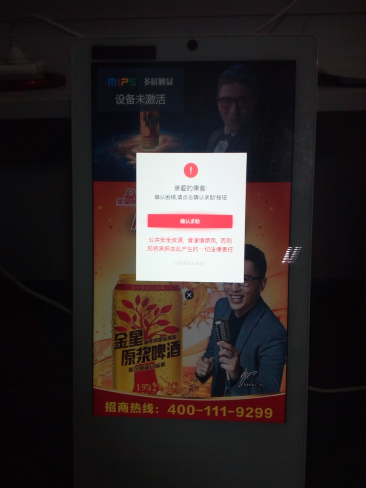 3、事故安抚 电梯故障发生后,当被困人员按下报警按钮,数字标牌将同步自动切换播放安抚视频,对乘客进行正确指导和心理安抚,并通过语音告知乘客电梯的当前状态以及正确的处理方法,从而避免因乘客的错误操作造成二次事故。