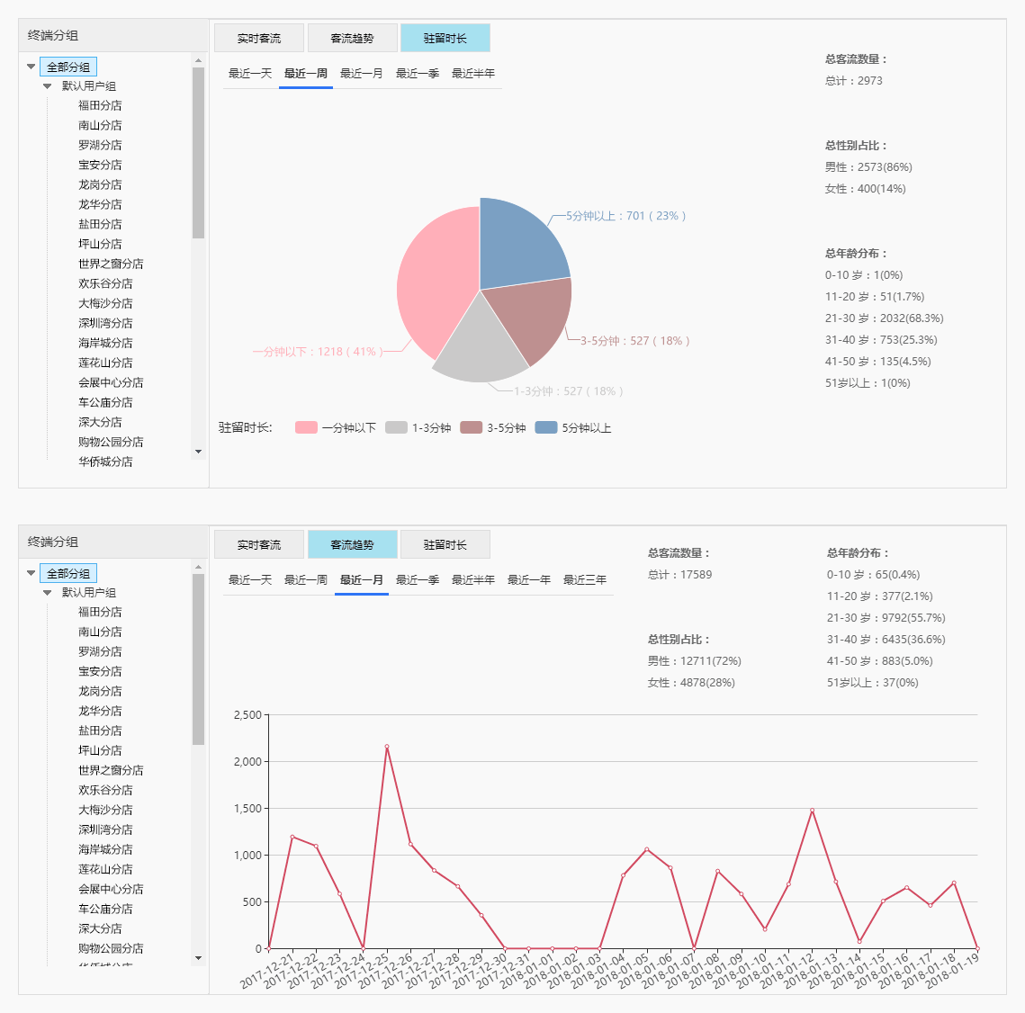 2、客流统计 安装MIPS人脸识别客流统计软件以后,广告主还可以精确统计出任意时段内观看广告的客流的男女属性和年龄,男女属性的精确度在99.5%以上,年龄精确度在90%以上,误差不超过3岁!通过对客流的统计数据进行分析,广告主可以及时调整广告内容以及投放策略,从而达到最大的回报率。