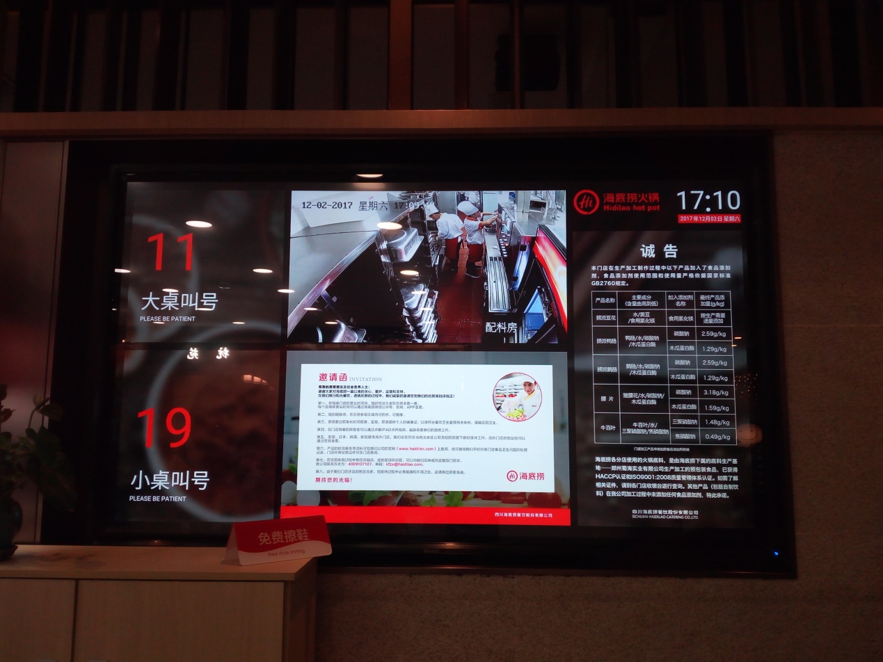 由于就餐时间大多比较集中,容易出现高峰期排队问题,引起顾客的埋怨,甚至会导致客户的流失,如何解决这个问题呢?视美泰认为可以利用排队叫号系统加以解决。视美泰的智慧餐厅解决方案,将明厨亮灶+排队叫号+品牌宣传集为一体,实现智能化排队,食客取号以后只需在休息区等待即可,并且可以实时了解排队进度。与此同时还可以通过屏幕看到后厨的情况,对食物的安全卫生更放心。并且商家还可以播放招牌菜的宣传片,展示菜品或者是食材背后的故事,吸引更多顾客。