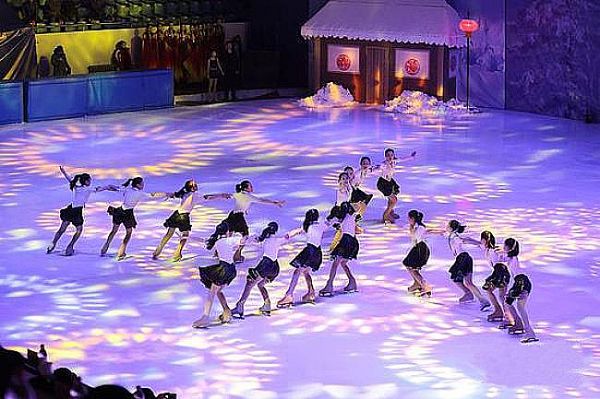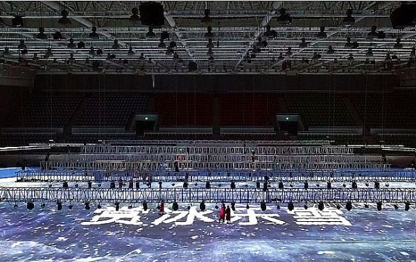 然而,作为冰雪文化,色彩总是单调的。例如,此次启动仪式选择的哈尔滨冰上基地,速滑馆、滑冰馆、花样训练馆等本质是「冰质地面」,色彩单一。为冰雪白,添加童话彩,就成了一项技术工程。