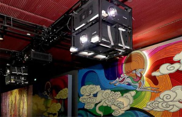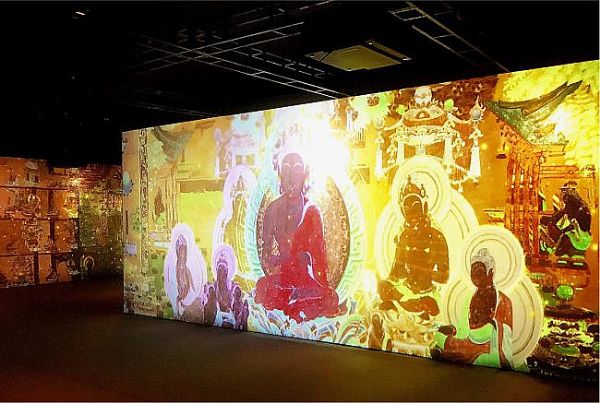 在国家大剧院内,通过42台视美乐8500流明近焦投影机将一百五十多米长的石窟壁画呈现于特制墙体之上。通过3D投影、全息技术、VR动捕技术等各种新技术的应用,长卷徐展、历史再现。这种数字展演不仅是文化的传承,也是最好的保护和再创造——它给予了已经消失的文化,无限流动的新生命。