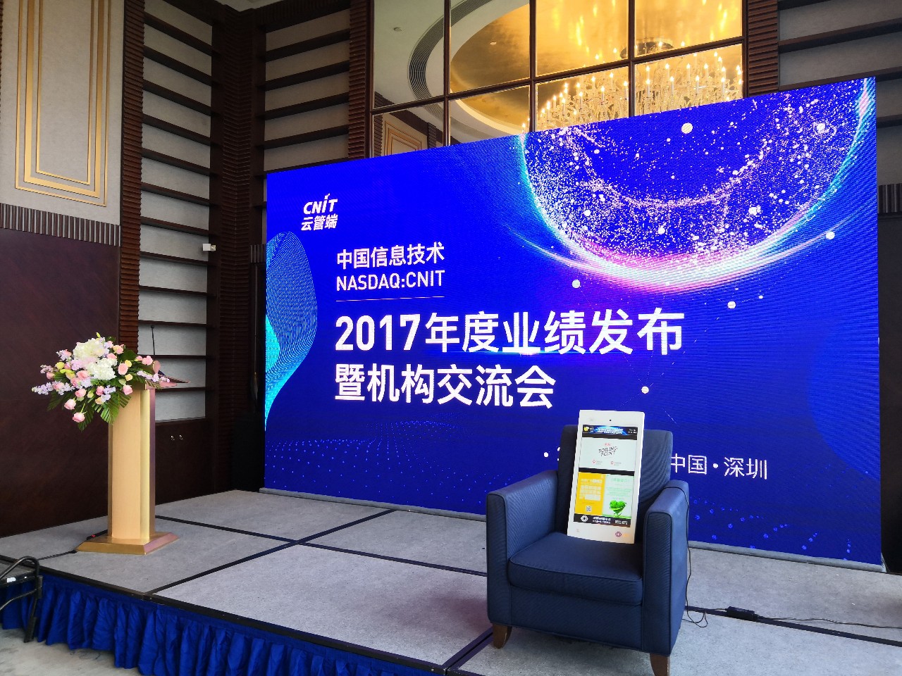4月13日,CNIT2017年度业绩发布会暨机构交流会在福田香格里拉40层主席厅隆重举行,深圳商显产促会副会长单位CNIT首席运营官黄志雄先生,董事会秘书、助理首席财务官颜丽琼女士主持会议,在会上公布了CNIT2017年度业绩情况,并就整体经济形势、公司主营业务及未来战略等方面与现场分析师及机构投资者进行了沟通交流。
