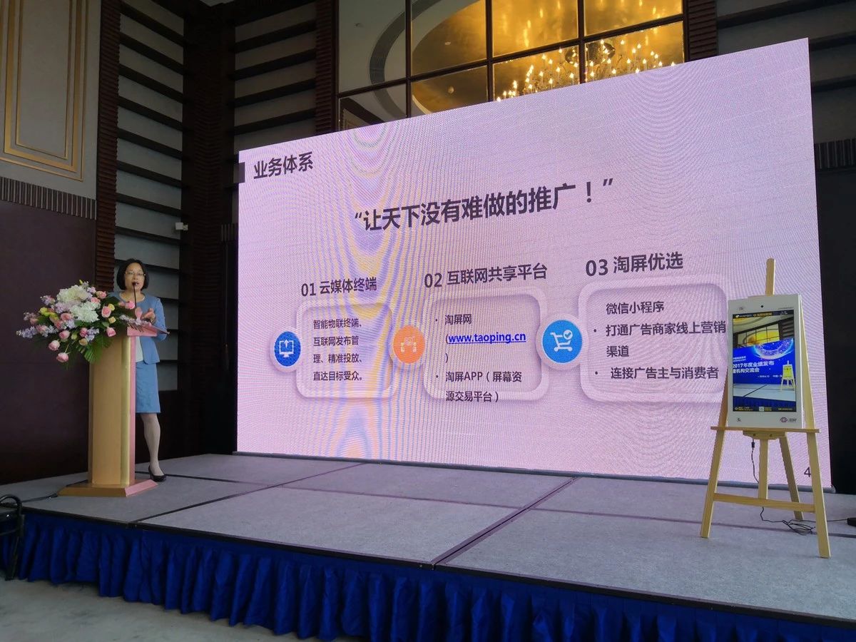 主营业务方面,颜丽琼女士向大家展示了基于共享新媒体平台衍生的淘屏网及淘屏App等应用,自2018年1月上线试运营以来,淘屏网为屏主、广告主及消费者提供了屏幕广告资源的三方链接交易服务平台,淘屏App则有效满足了碎片化广告发布需求,任何人通过淘屏App都可以自由选取全国媒体终端点位,即买即投发布信息,在线监播广告情况。