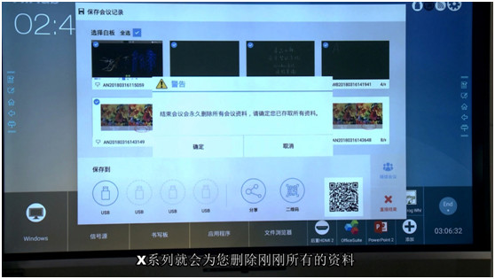 资料轻松存:会议结束时,轻轻一按,之前所有书写和批注的资料都会显现出来,你可用U盘连接X9,所有资料就会存到U盘中。没有U盘?还可一键产生二维码,手机扫码把资料「打包」带走!