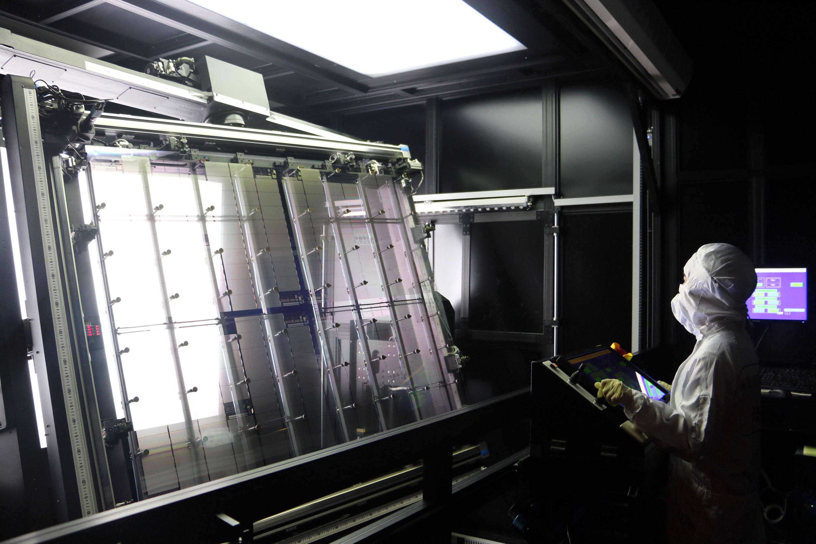 以当下京东方合肥10.5代TFT-LCD生产线为例,前期主要生产65/75英寸的8K超高分辨率液晶显示屏为主,设计产能为每月12万片玻璃基板,10.5代线(玻璃基板大小2940mmx3370mm)相比8.5代线,切割大尺寸电视优势明显。比如切割65英寸,8.5代线仅可切割3片,而10.5代线可切割8片,且切割效率可达95%之高。70英寸或75英寸,10.5代线都能切割到6片。