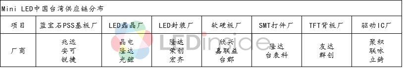 下表为中国台湾厂商相关产业发展Mini LED技术的供应链分布整理: