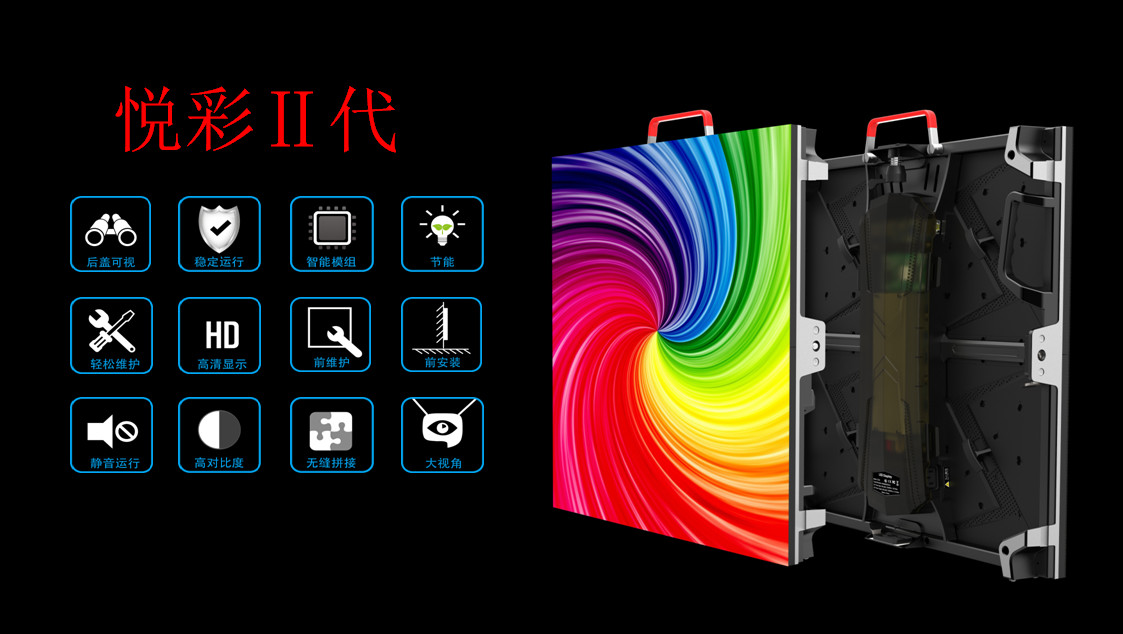 悦彩二代拥有H151、H161、H181E、H201、H251、H301多种型号,涵盖P1.5、P1.6、P1.8、P2.0、P2.5、P3.0等多种点间距,采用480mm*480mm标准化尺寸箱体,实现多点间距共用平台的效果,省时、省力、更省钱。