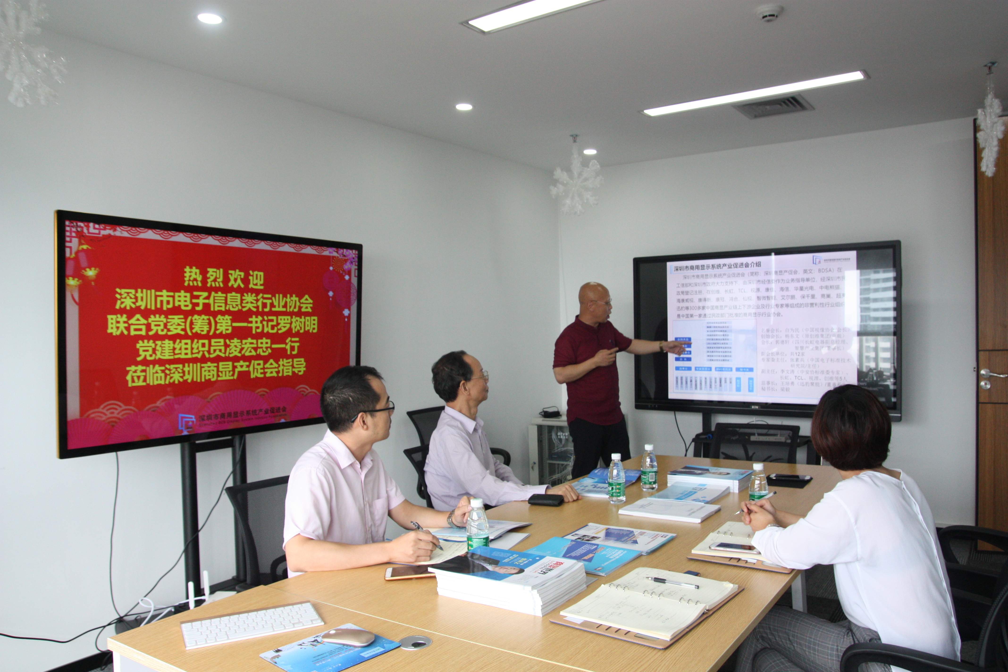 6月14日上午,中共深圳市社会组织委员会、深圳市电子信息类行业协会联合党委(筹)第一书记罗树明、党建组织员凌宏忠一行视察指导深圳市商用显示系统产业促进会基层党建工作,就目前促进会在党建过程所遇到的难题和未来发展方向,给予了指导性的建议。