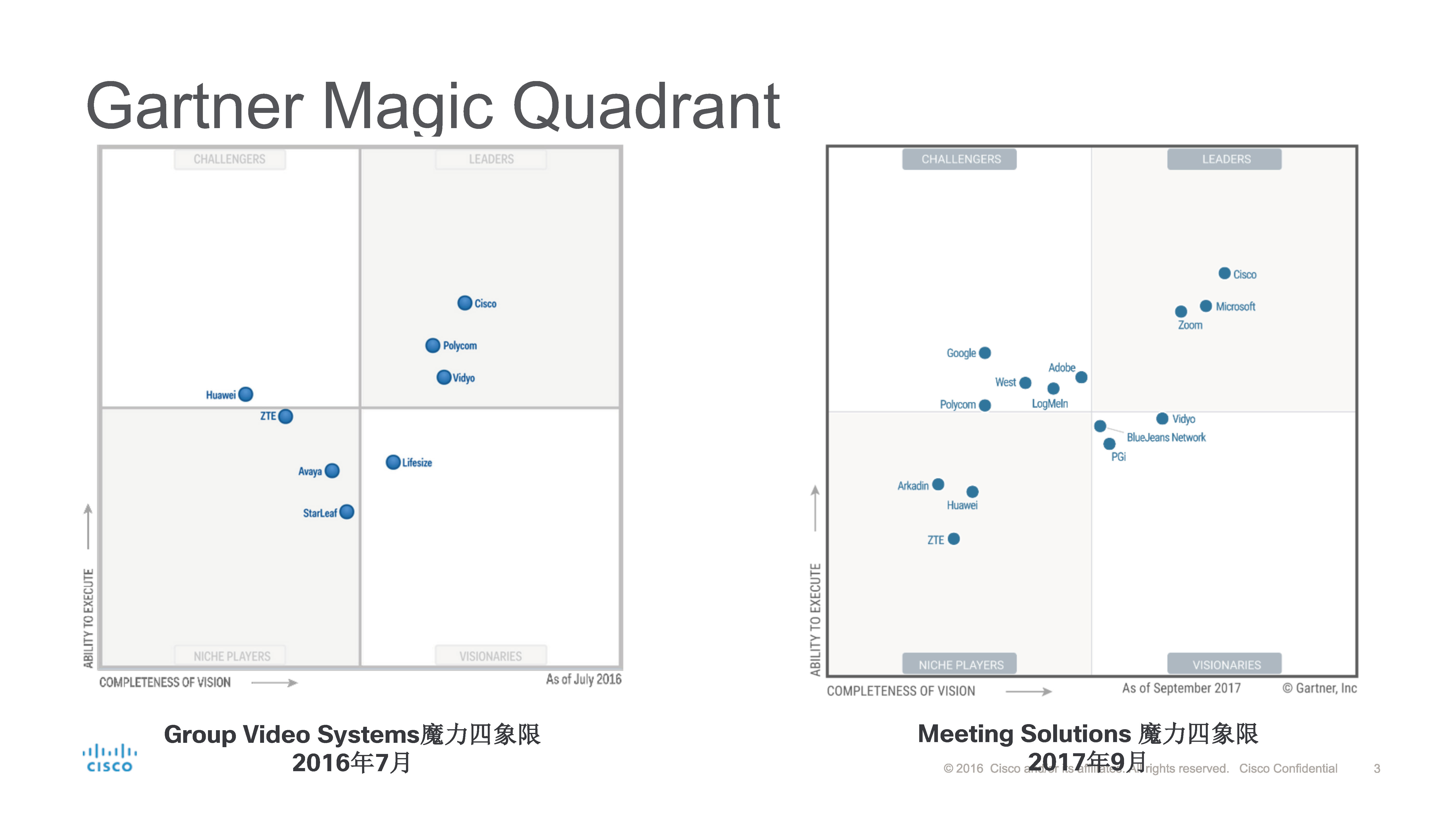 思科是一个非常有规划的公司,在协作方面做了相应的规划,在Gartner的魔力四象限中,思科一直处于领导者象限中。思科有一个非常远大的Vision。