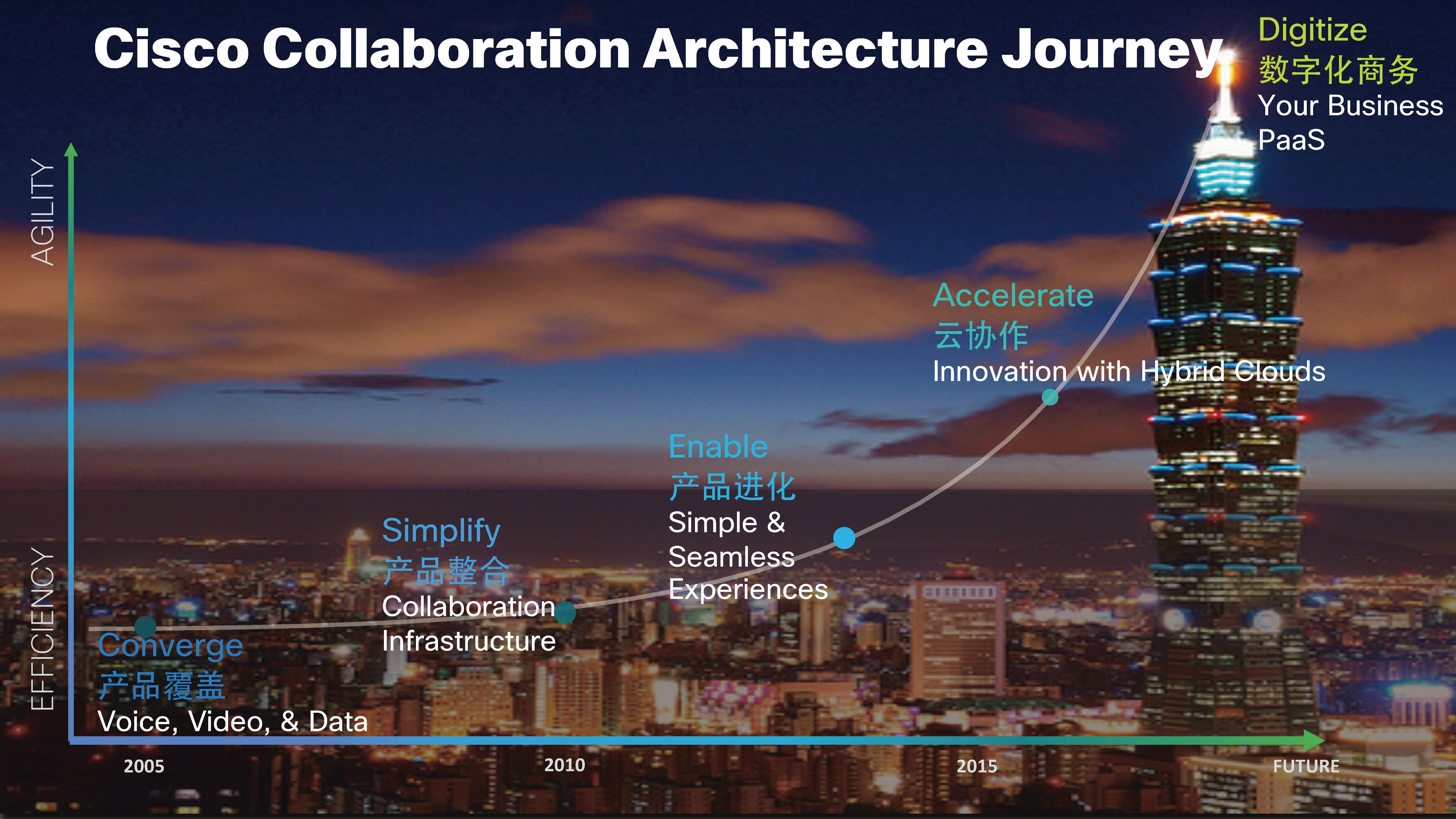 当时,思科决定进入协作市场后,就为自己做了一个规划,协作架构要分五步来走。