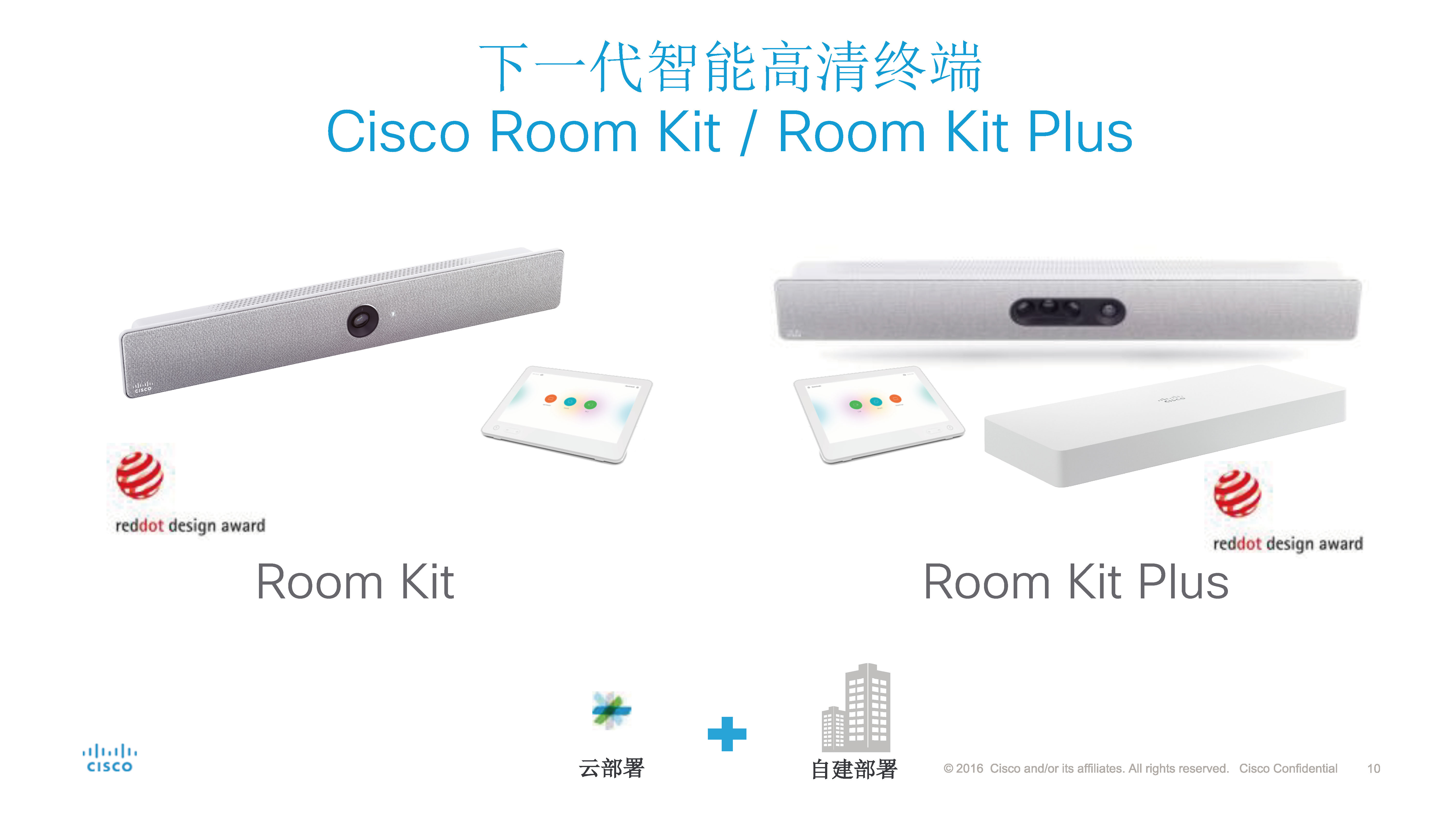 2016年底在国外、2017年在中国,思科发布了一个产品叫Room Kit,Room系列终端,主打的就是Room Kit 和 Room Kit Plus。很荣幸,拿了红点大奖。很简单,就是把这个设备放到会议室中,简化会议室。