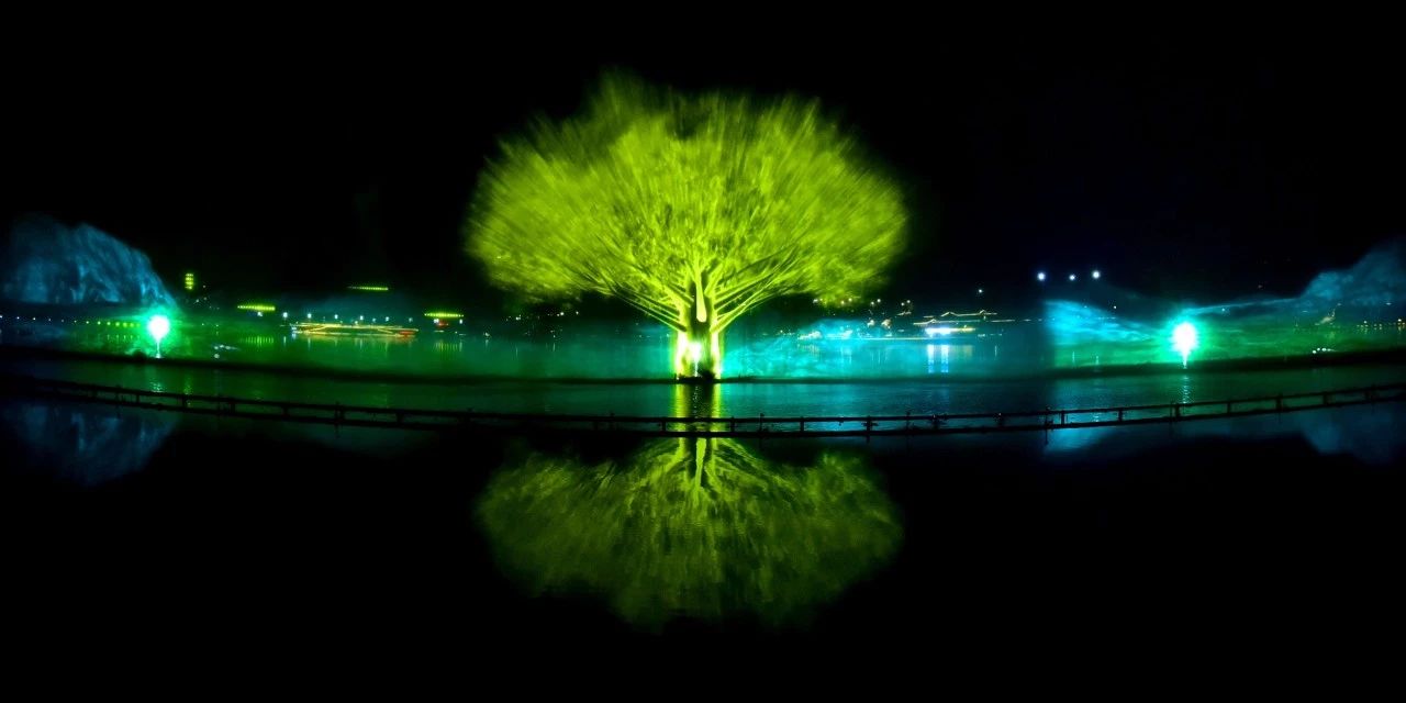目前,白鹭湖水幕投影成功通过了吉尼斯的官方认证,获得全球第一大水幕投影的殊荣。据汉合天辰(厦门)科技有限公司总经理、项目总导演罗力华介绍,「该项目采用了3台NEC 40000流明4K双色激光工程机,最终实现了长150米、高25米的水幕整体效果,总投影面积达1582平方米。」
