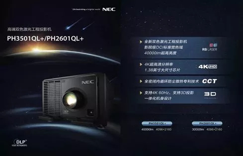 高清细节丝毫毕现,NEC PH3501QL+工程投影机采用3DLP双色激光光源,全DCI高色域,影院级的4K影像处理器带来的画面视觉冲击力十足。