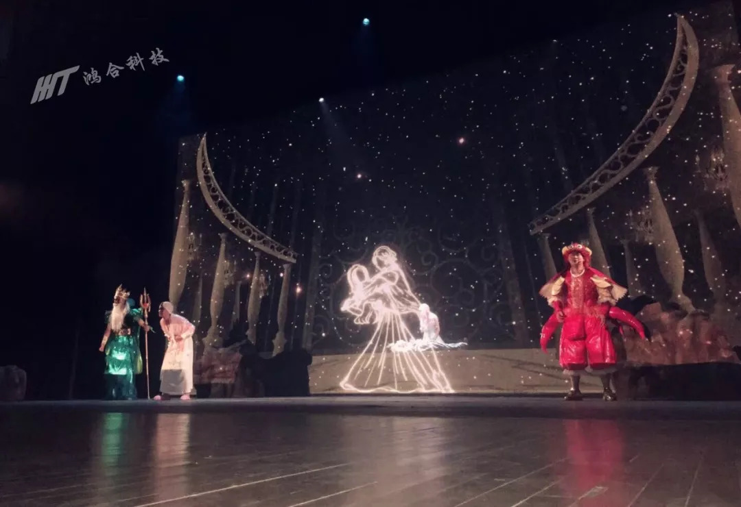 NEC 40000lm双色激光工程投影机带来强烈的临空立体感,现场背景丰富多变、完美的光影效果,通过演员、舞美团队、音乐、特效影像完美结合。