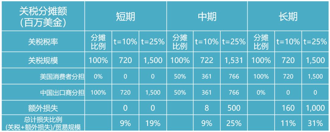 而从中期来看,由于扮演供给者的中国厂商具有灵活调节对美出口金额和数量的能力,关税将会由中国的出口商和美国消费者共同分担。