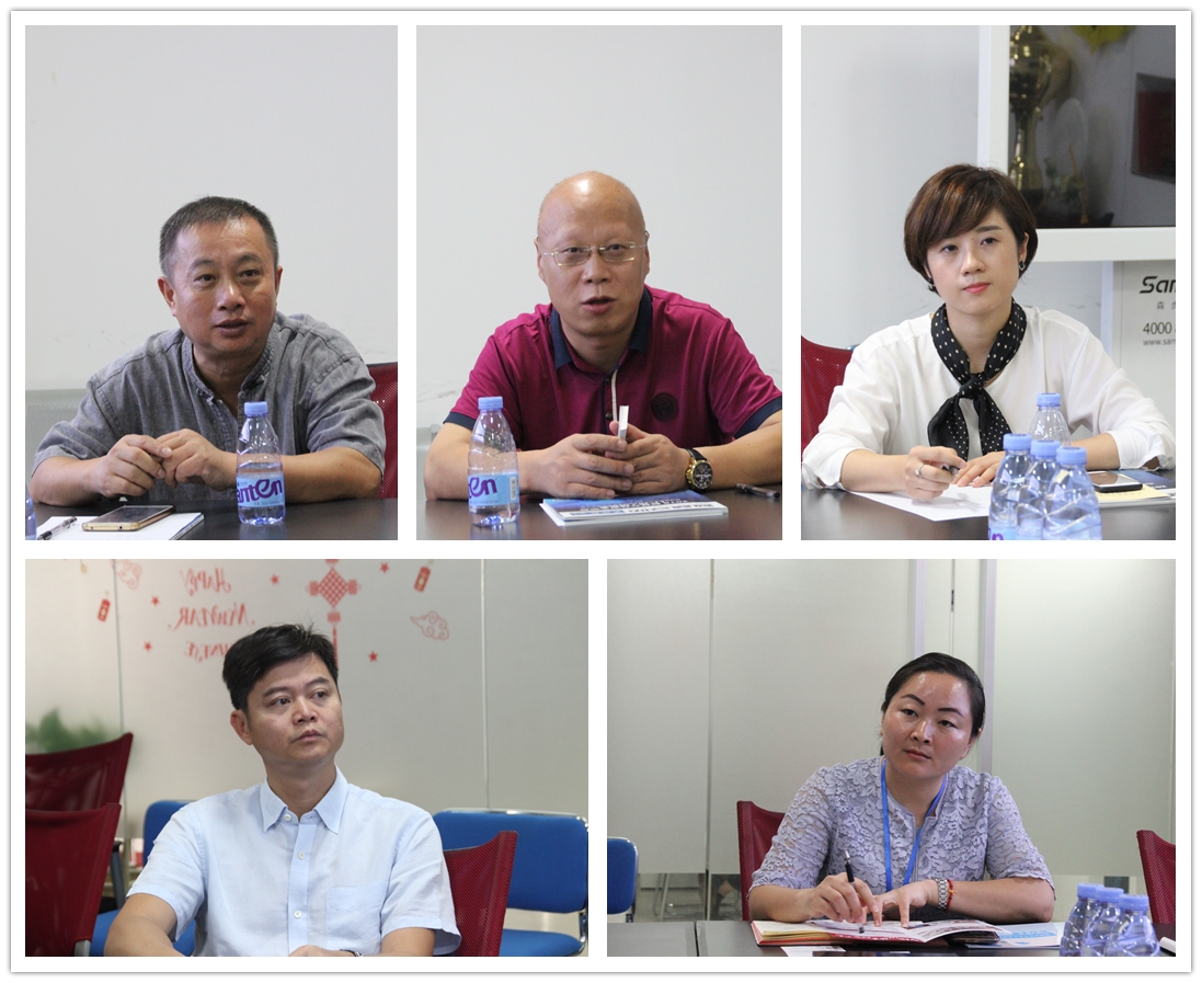 座谈会现场,自左至右、自上而下分别为:李文涛、梁毅、Tina、张毅、吴金平