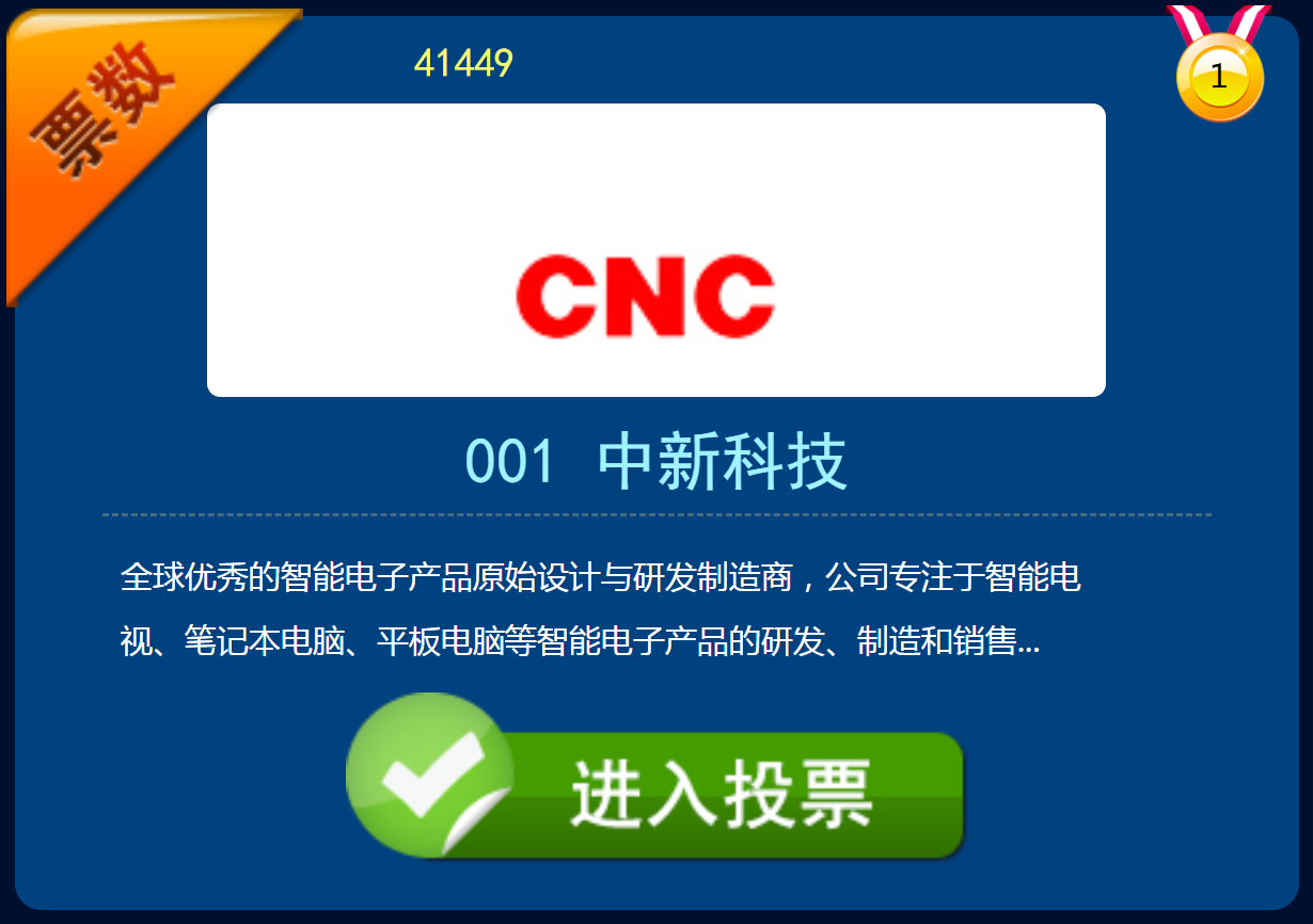 第一轮投票结束时前五强是:中新科技、皓丽、研盛芯控、云智汇、惠科,截止目前(11月1日),除中新科技牢牢占据第1外,其他4个名次都经过了洗牌,如今的前5排名情况为:中新科技、研盛芯控、星心相印、皓丽、云智汇。
