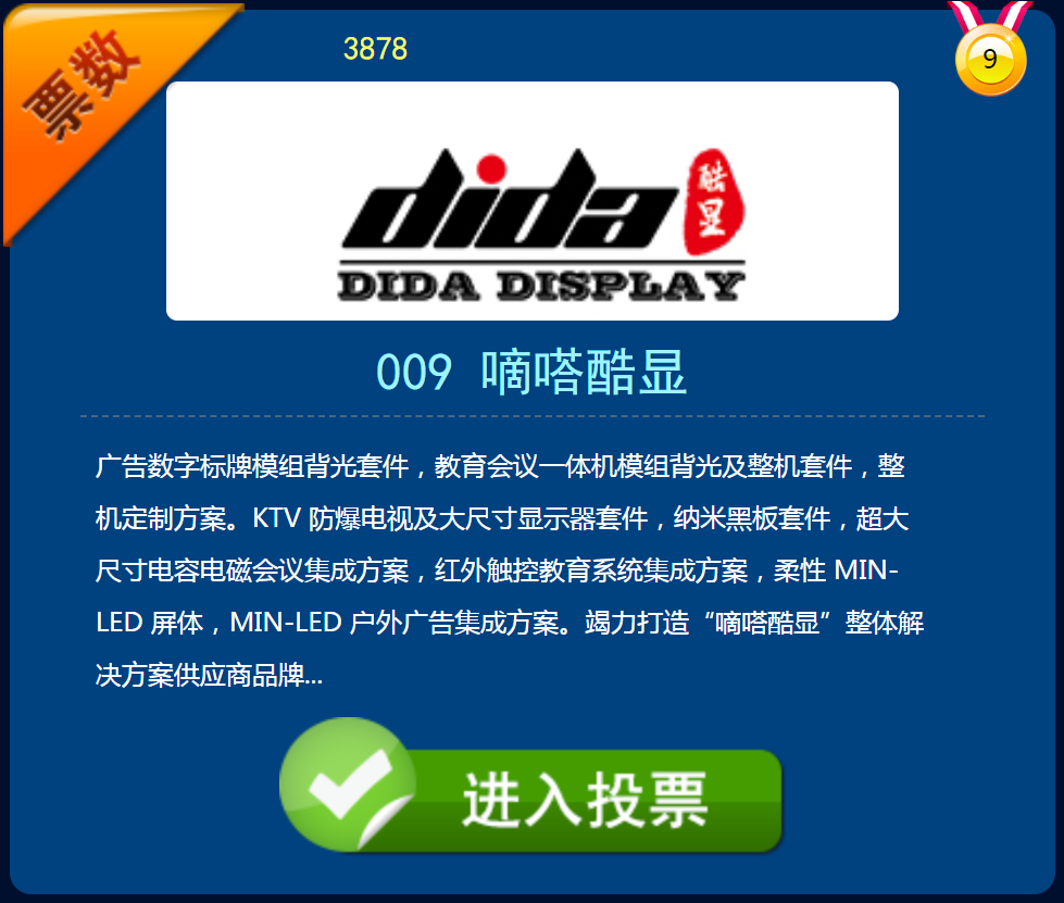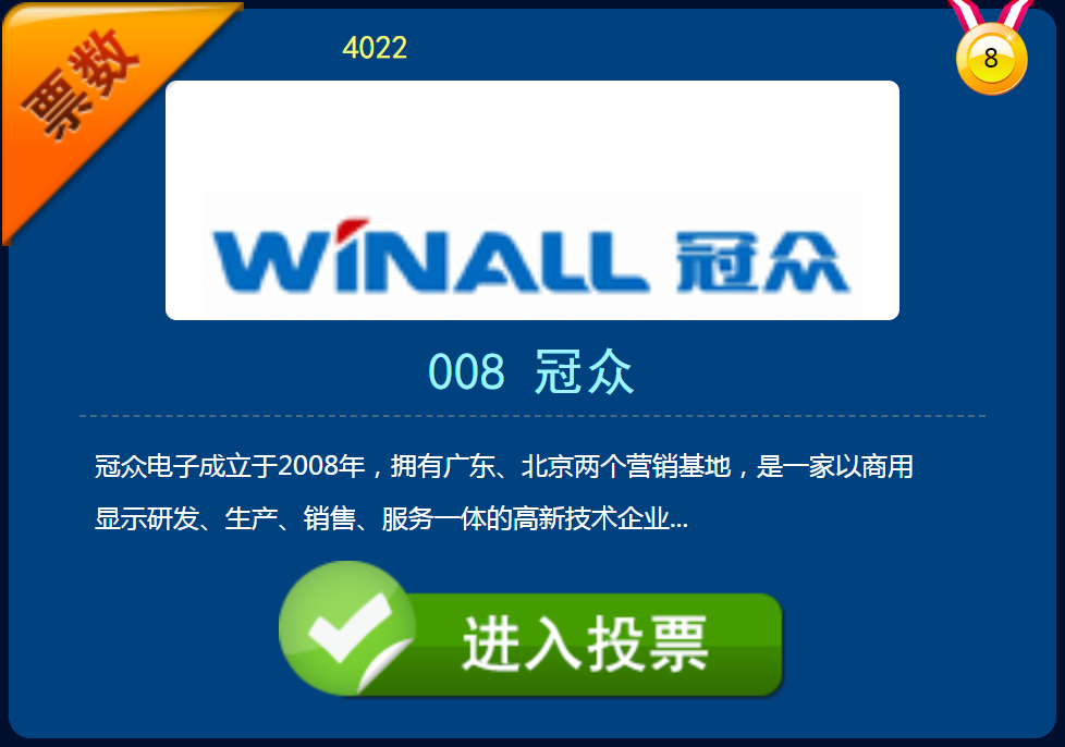 迄今为止,一年一度的评选活动已成功举办了整整九届,吸引了累计3500+参选企业、5000万+票选量、关注度超过100,000,000+,诞生了LCD户外显示、交互式平板、液晶拼接、大屏拼接、数字标牌、商用电视等各领域大奖,堪称智慧显示行业的「诺贝尔奖」,在业界形成了广泛的影响力和强劲的号召力,声名远播,占有举足轻重的地位,受到各级政府与主流媒体的高度关注。