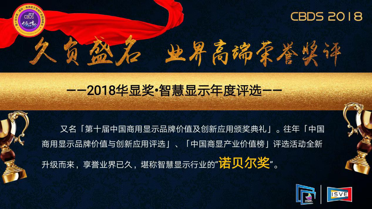 1.必须符合国家发展战略,符合智慧显示产业发展方向; 2.申报单位承诺其提供的申报评奖资料无虚假成份,确保无专利纠纷。 特别说明:评审解释权归评选委员会所有 「2018华显奖·智慧显示年度评选」活动正式启动,十年辉煌之作,经典再续。全国各地数百家智慧显示产业的参选企业将齐聚深圳,共赴商显盛典。12月6日「华显大奖」颁奖典礼深圳会展中心2018年度实力巨献,敬请期待! ![]()