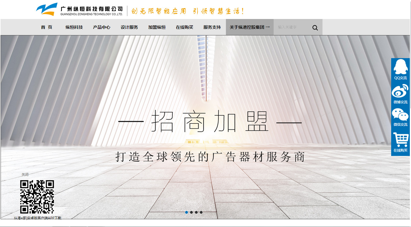 纵港控股集团旗下产业——广州纵恒科技有限公司是一家专注于智能化终端产品生产、研发和销售的高科技企业,主要应用于智能广告机、智能教育一体机、智能数字标牌、智能广告灯箱等产品领域,为客户提供美的感受和体验,同时致力于智能家庭、个性快装等一体化的解决方案研究。