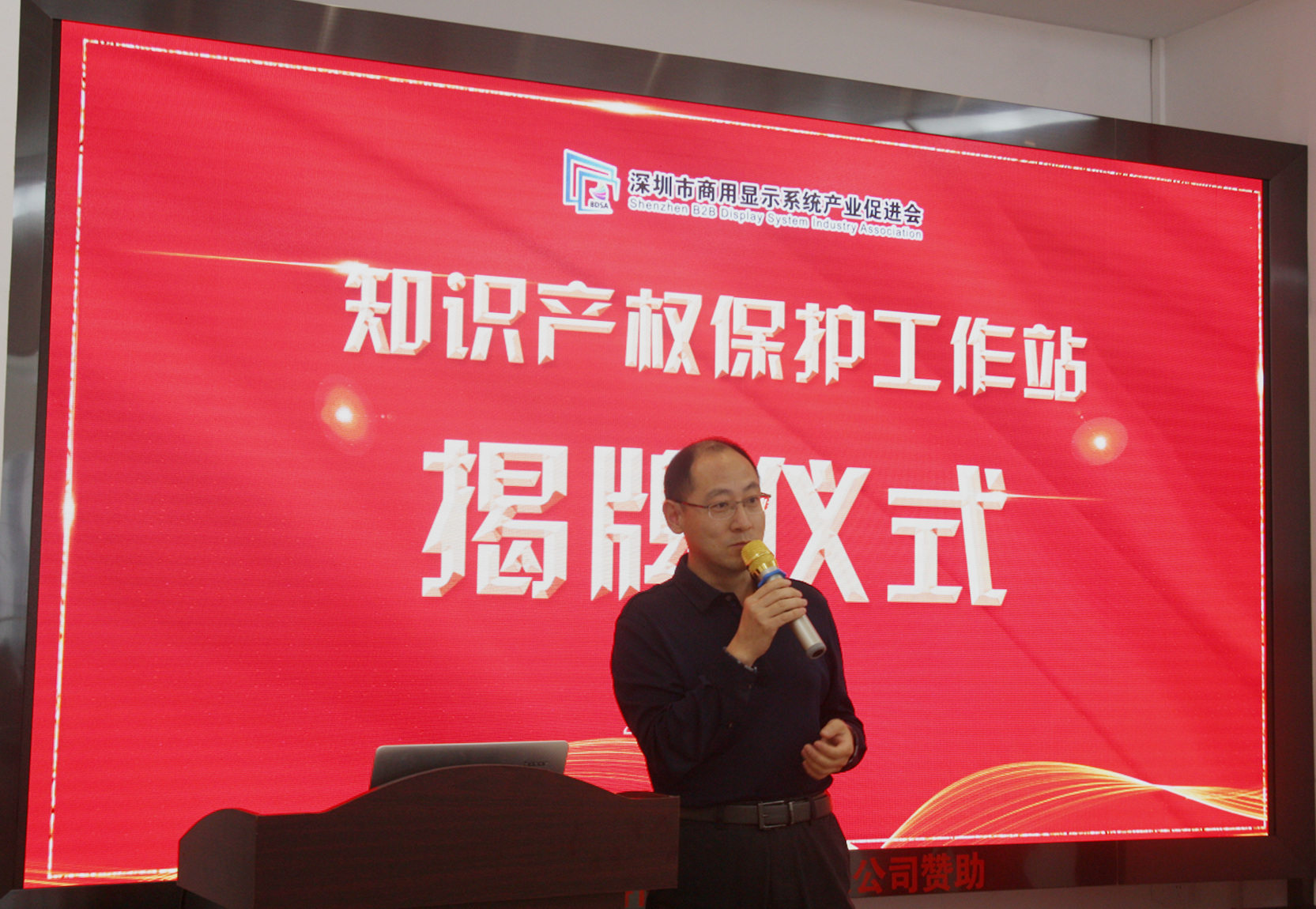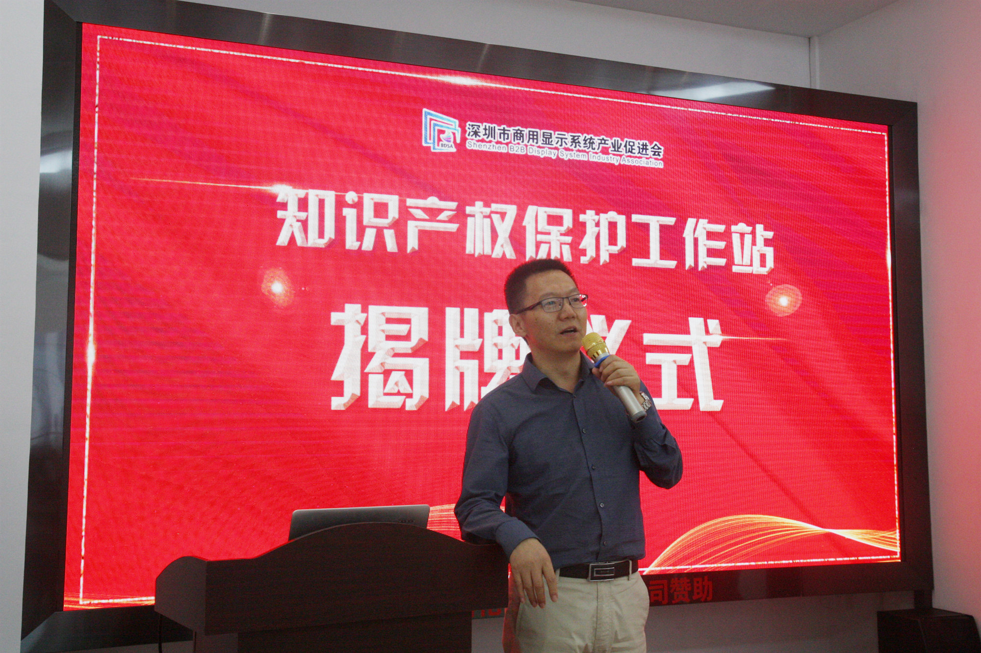 深圳市知识产权局周家贵处长为本次揭牌仪式作了发言,他表示感受到深圳商显产促会对知识产权保护工作的高度重视,代表深圳市知识产权局向深圳商显产促会知识产权保护工作站的成立表示热烈祝贺。