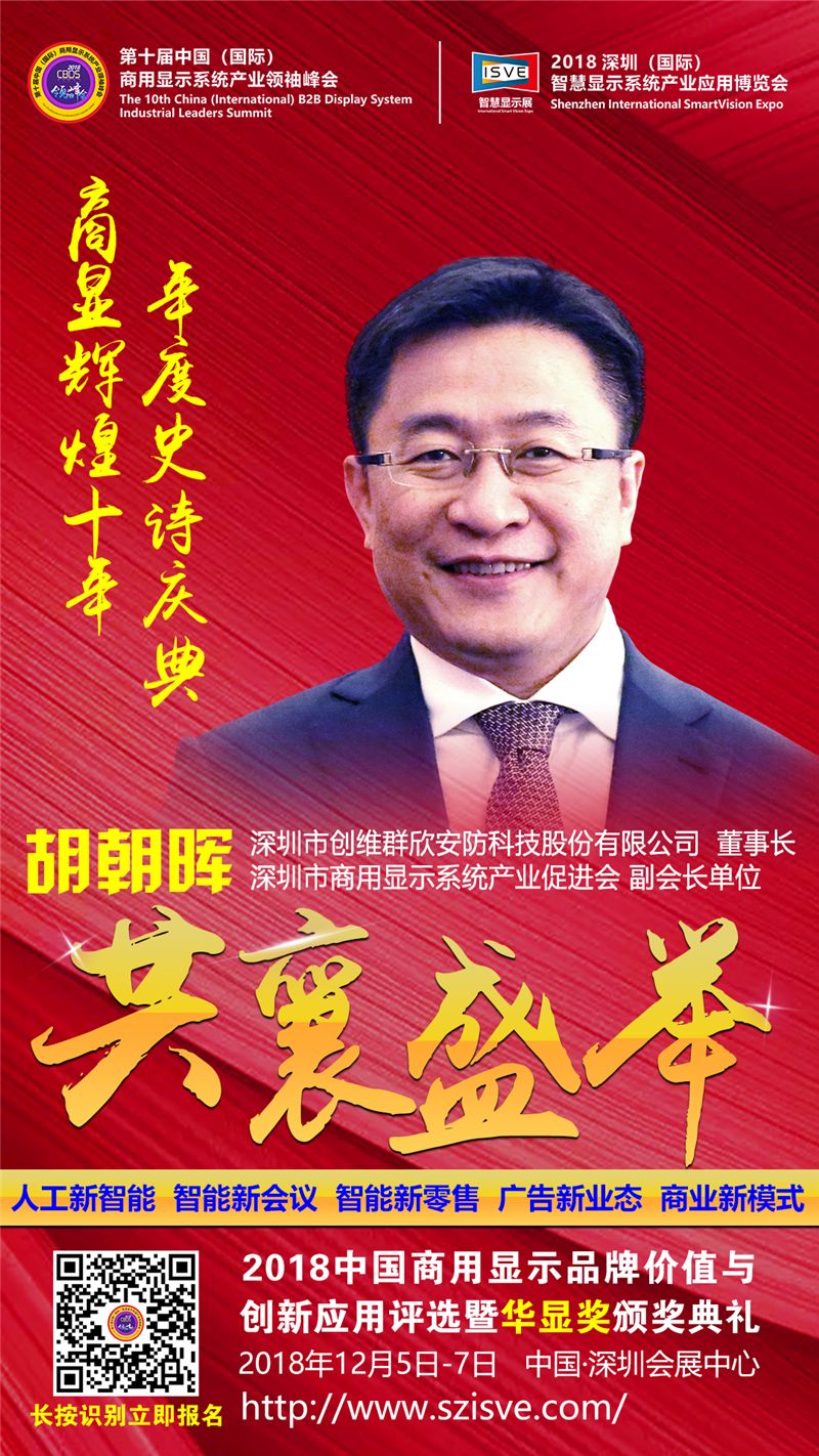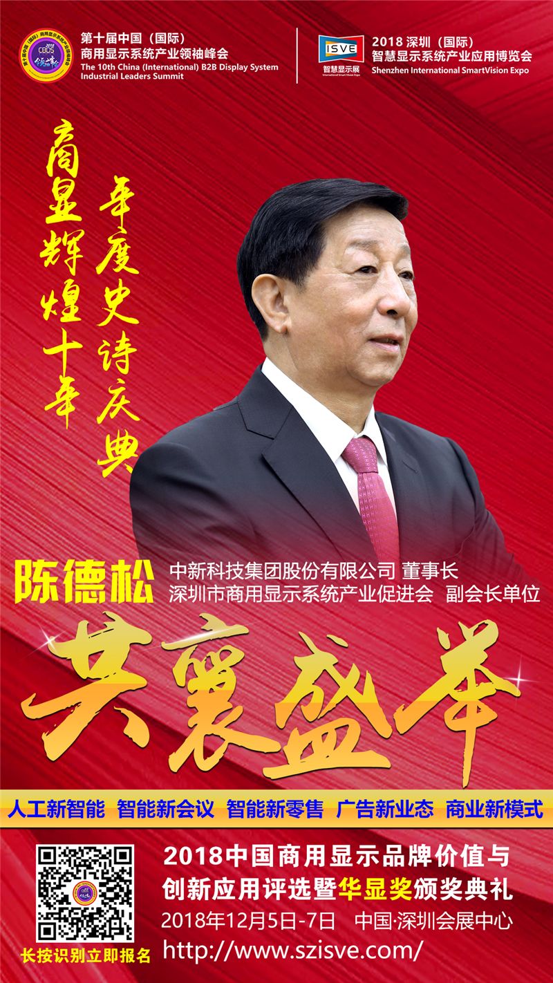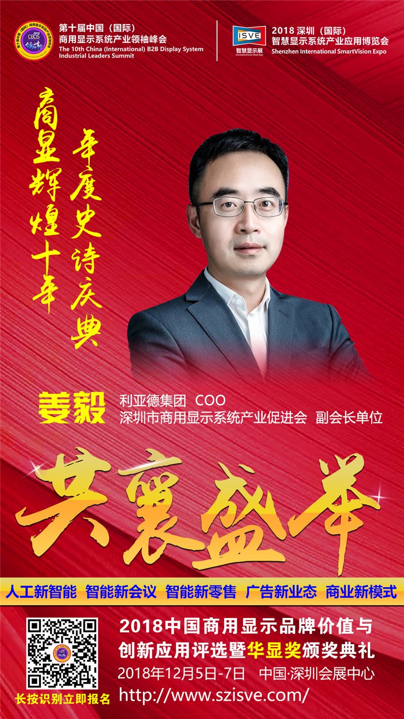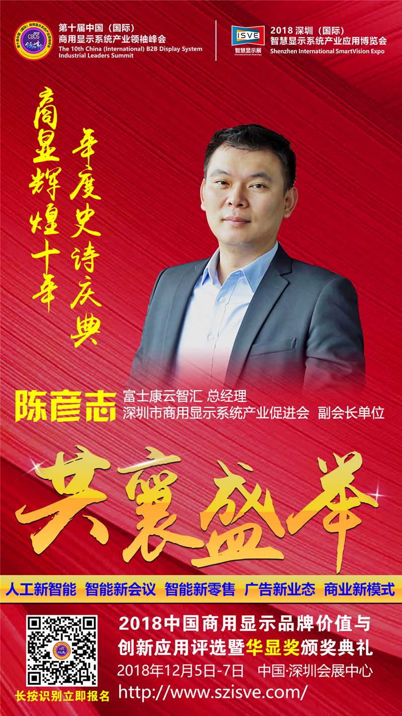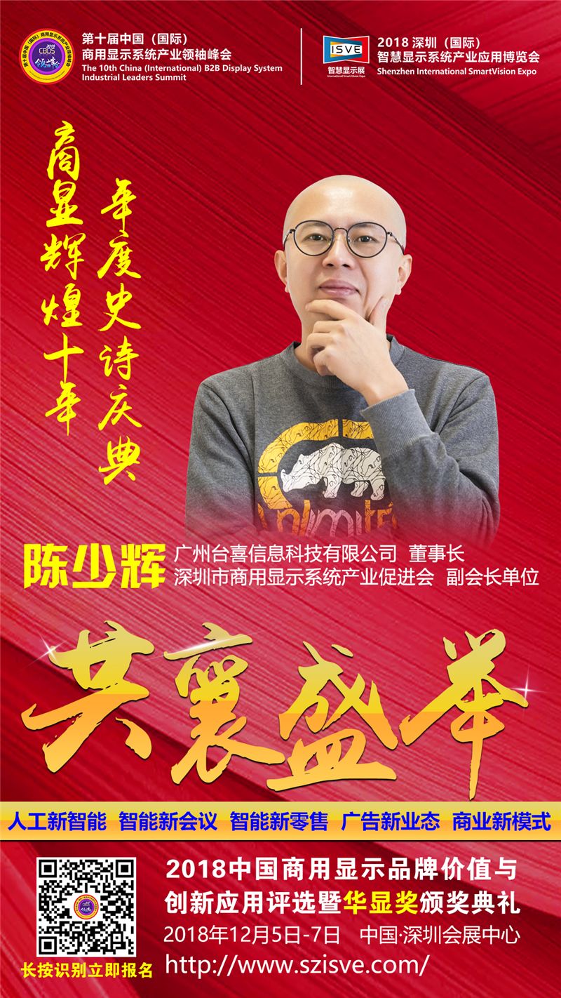 12月5-7日,智慧商显产业历史性盛会——「智慧商显十年大庆」系列活动——「第十届中国(国际)商用显示系统产业领袖峰会」(CBDS 2018)、「2018深圳(国际)智慧显示系统产业应用博览会」(ISVE 2018)、「2018华显奖·智慧显示年度评选」颁奖典礼即将开幕。
