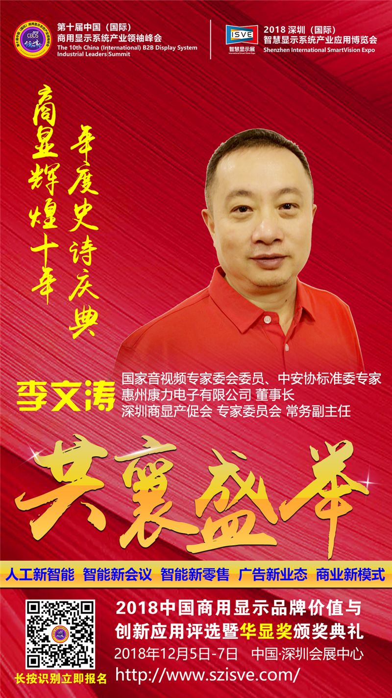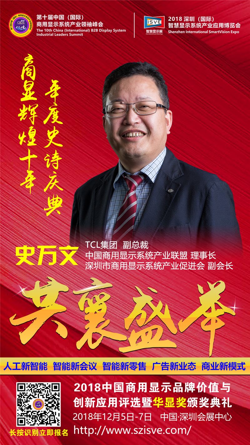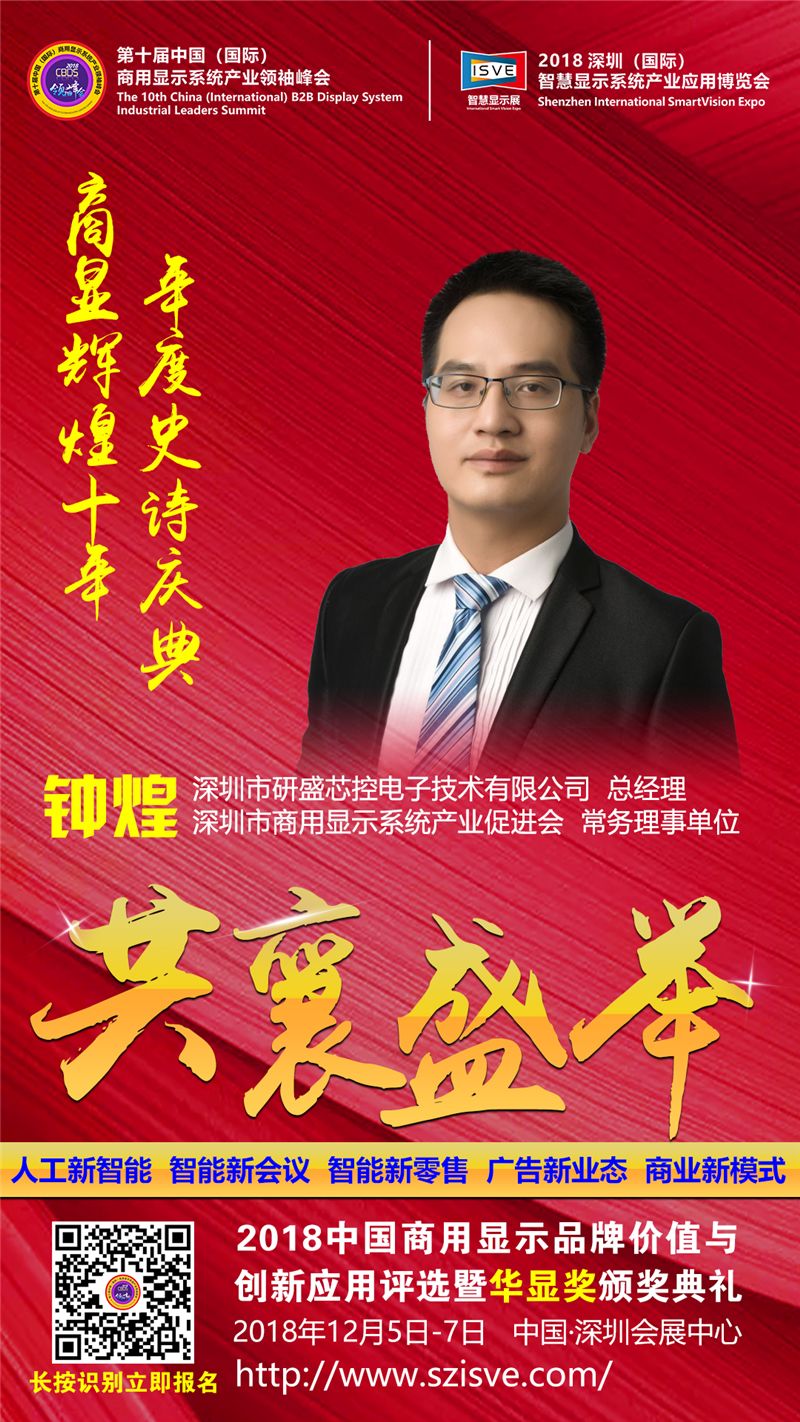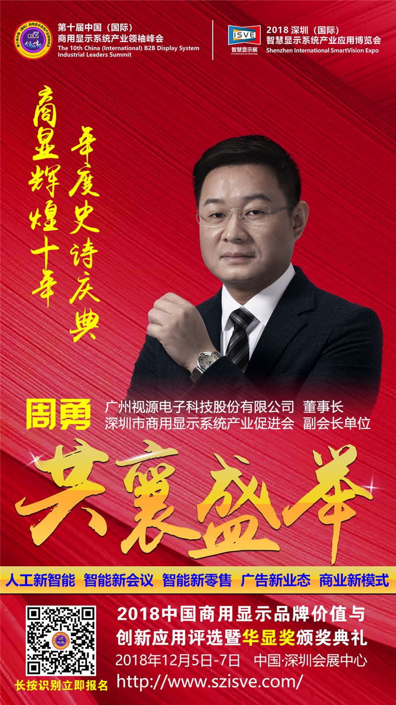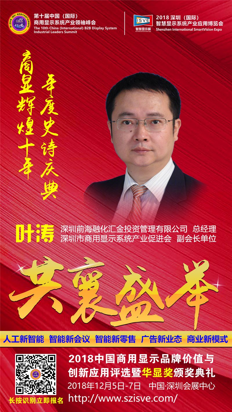 12月5-7日,智慧商显产业历史性盛会——「智慧商显十年大庆」系列活动——「第十届中国(国际)商用显示系统产业领袖峰会」(CBDS 2018)、「2018深圳(国际)智慧显示系统产业应用博览会」(ISVE 2018)、「2018华显奖·智慧显示年度评选」颁奖典礼即将开幕。