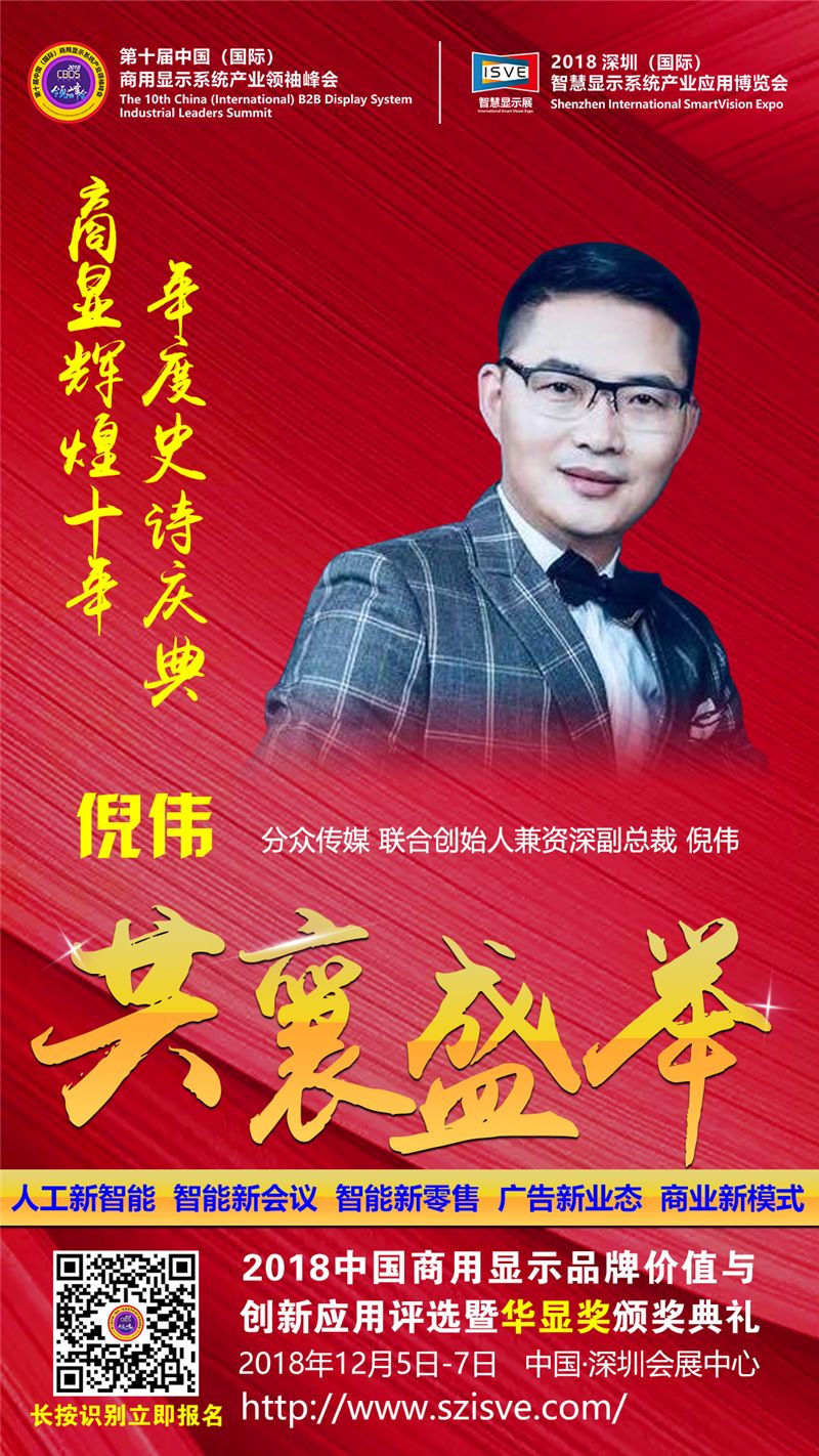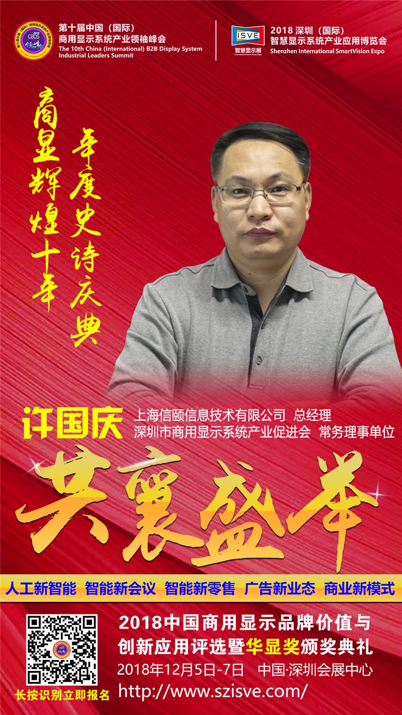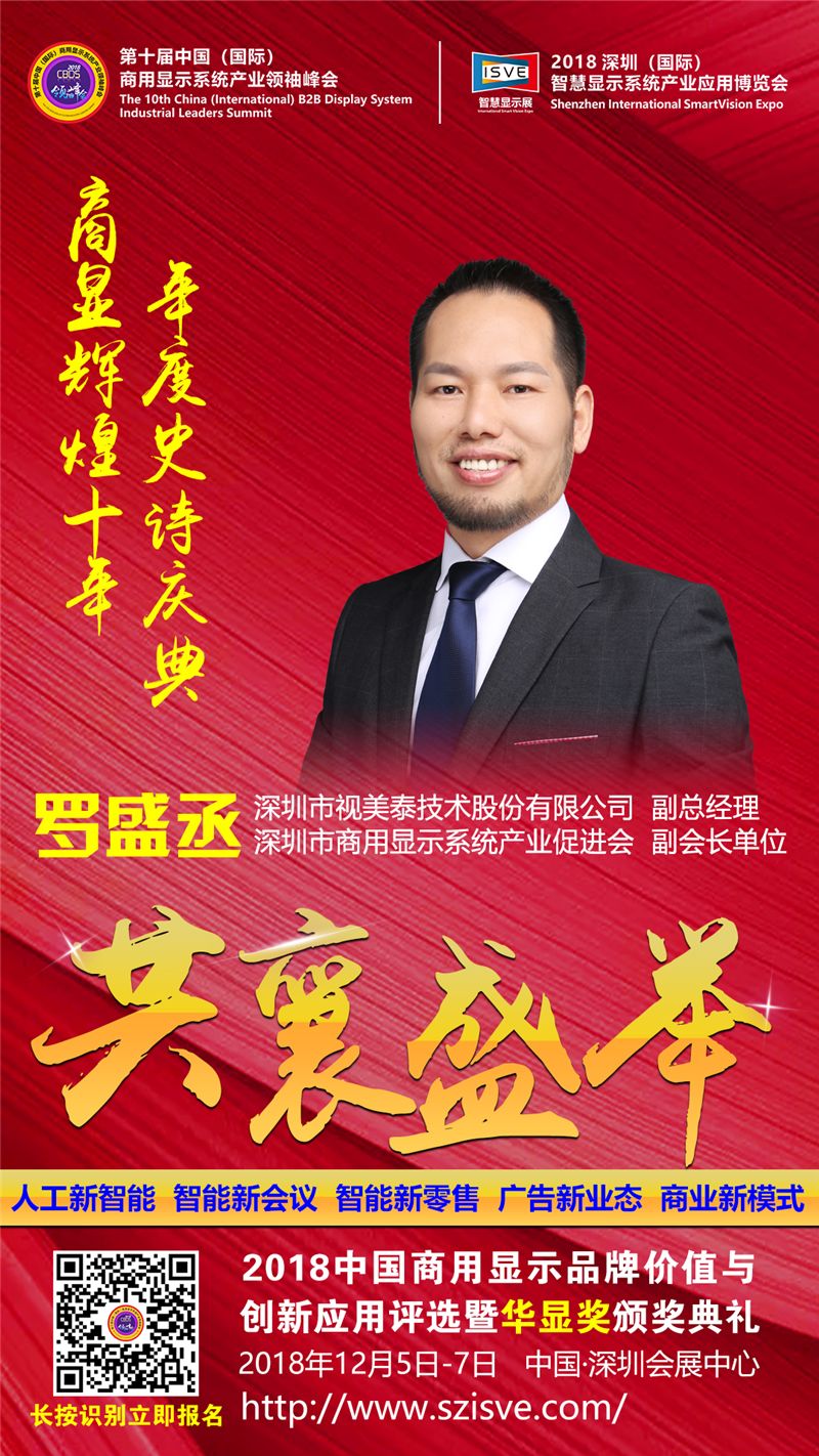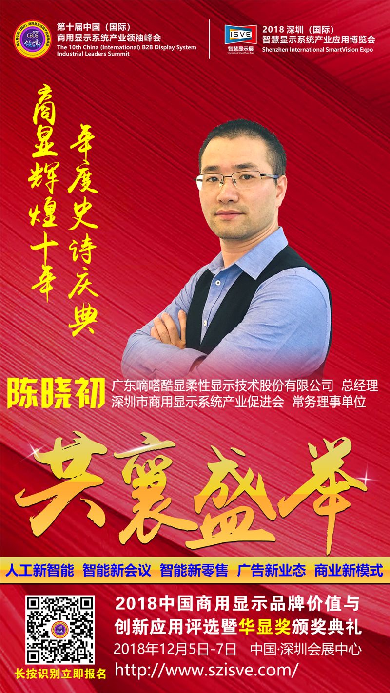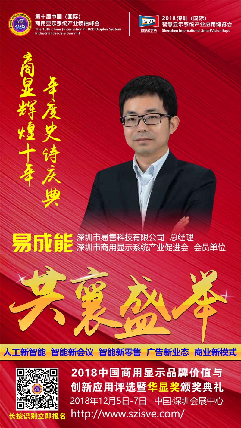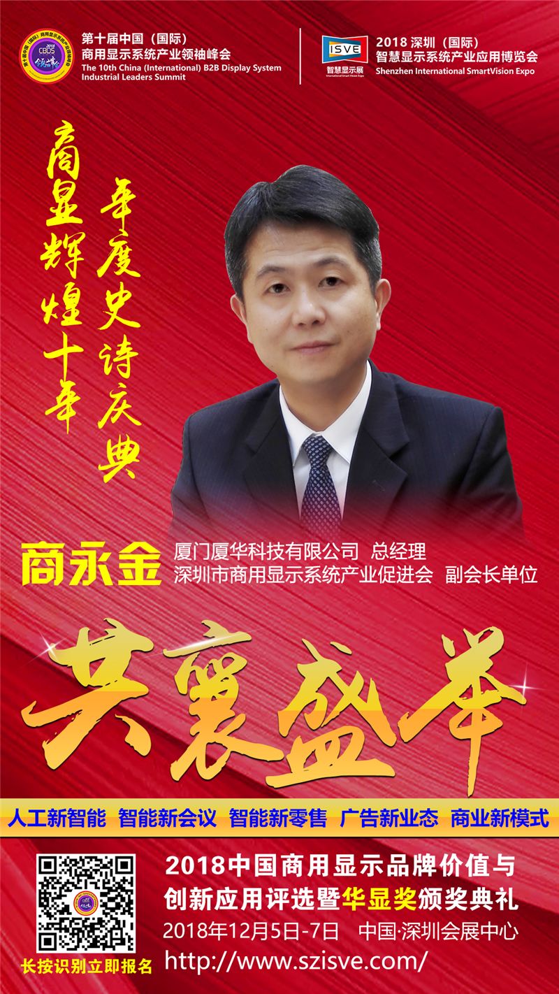 12月5-7日,智慧商显产业历史性盛会——「智慧商显十年大庆」系列活动——「第十届中国(国际)商用显示系统产业领袖峰会」(CBDS 2018)、「2018深圳(国际)智慧显示系统产业应用博览会」(ISVE 2018)、「2018华显奖·智慧显示年度评选」颁奖典礼即将开幕。