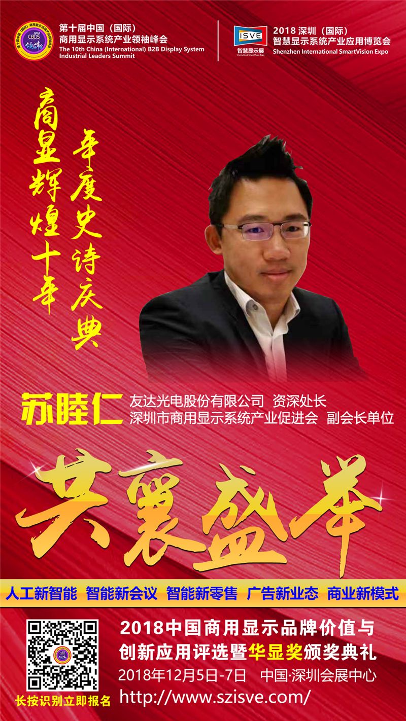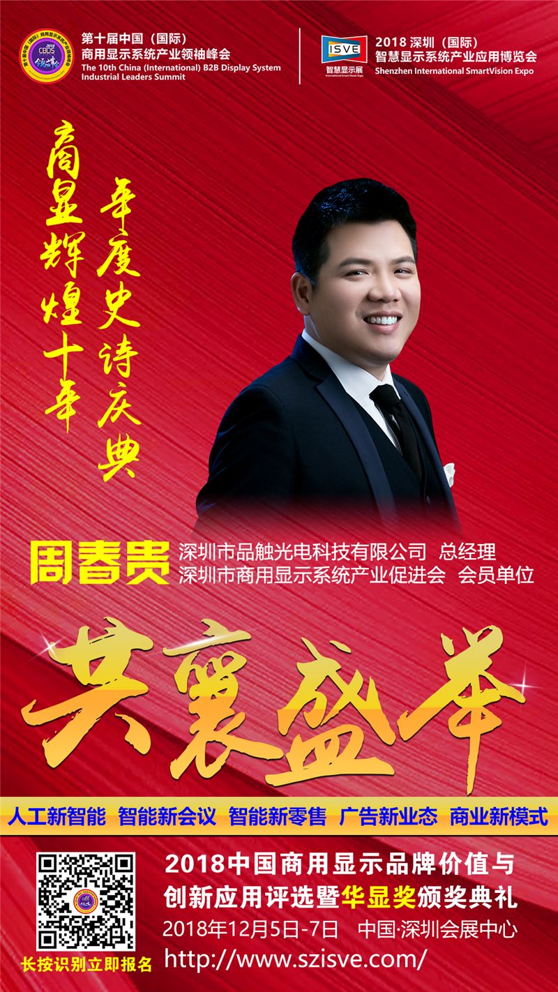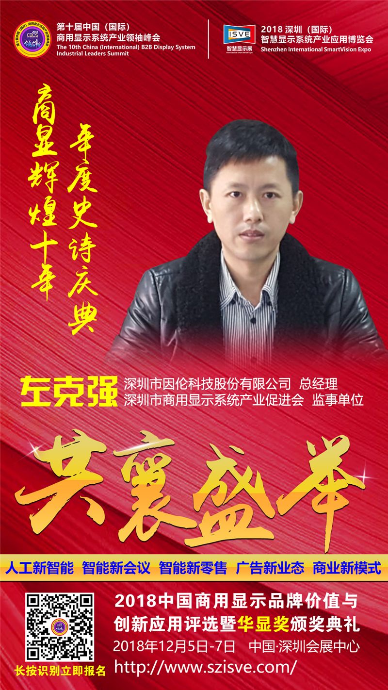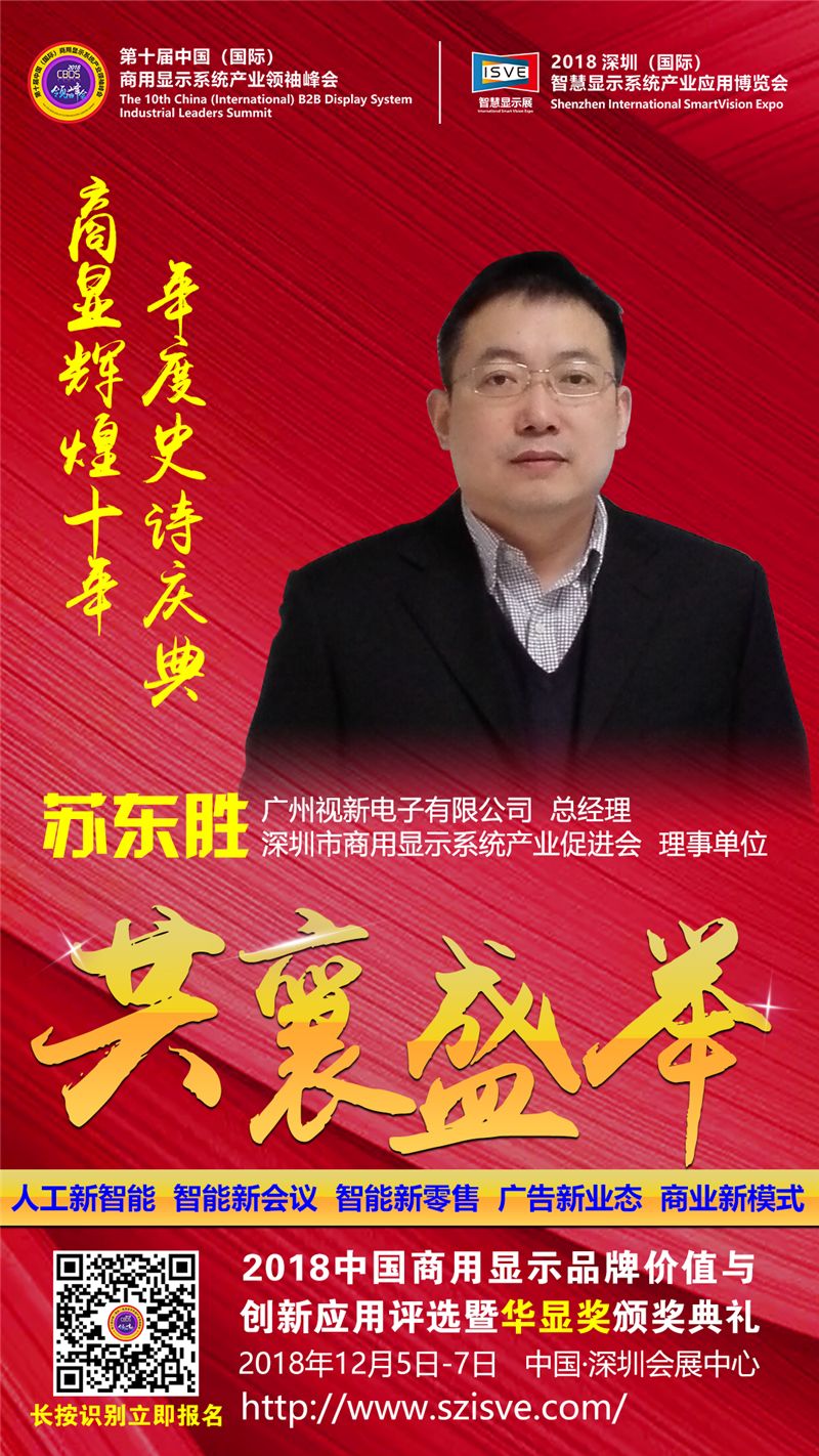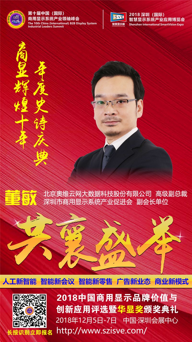 12月5-7日,智慧商显产业历史性盛会——「智慧商显十年大庆」系列活动——「第十届中国(国际)商用显示系统产业领袖峰会」(CBDS 2018)、「2018深圳(国际)智慧显示系统产业应用博览会」(ISVE 2018)、「2018华显奖·智慧显示年度评选」颁奖典礼即将开幕。