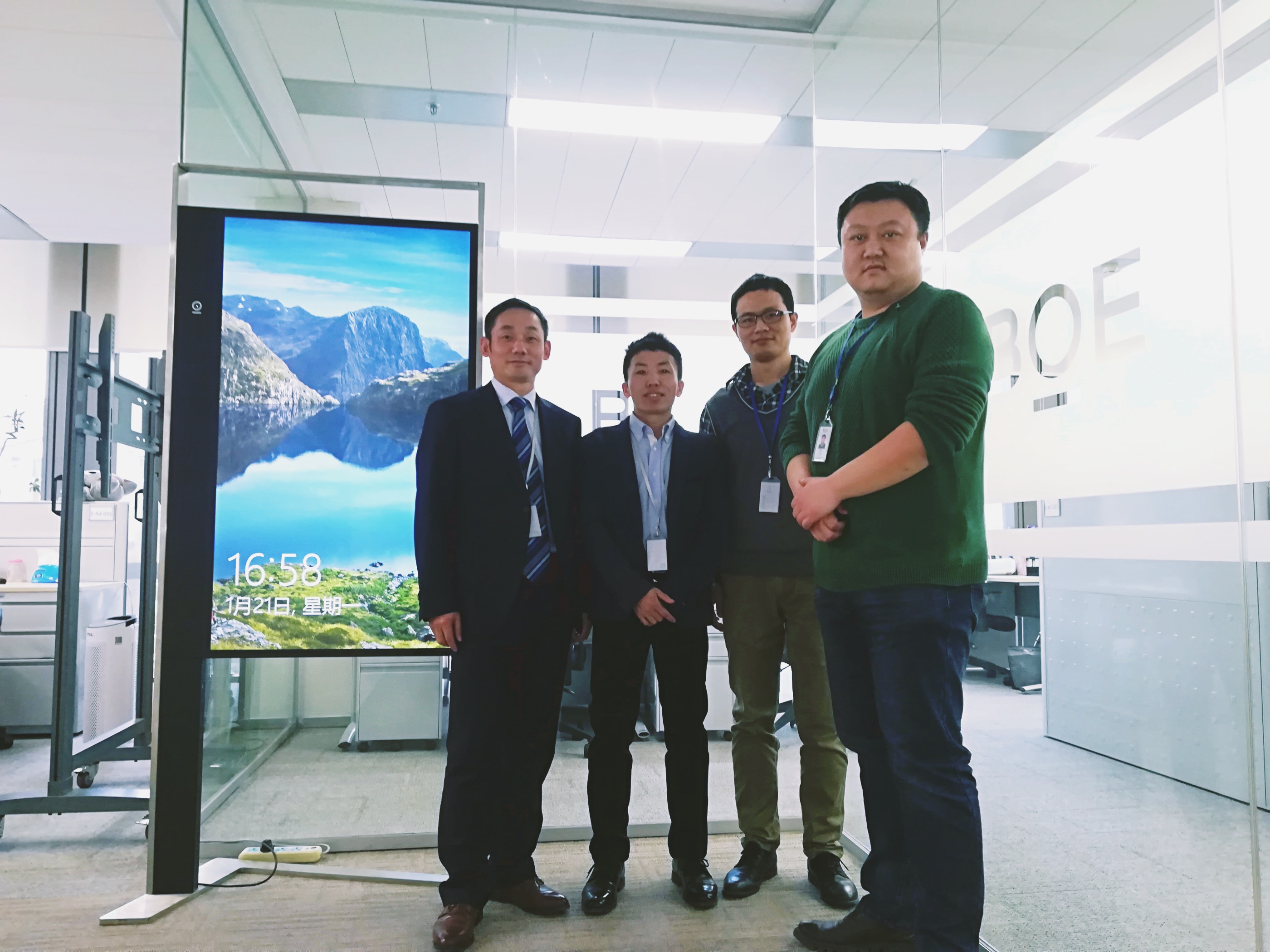 2019年1月20日,这是个阳光明媚的星期天,深圳商显产促会常务理事单位——易晖光电三位工程师风尘仆仆地登上了飞往北京的航班。他们此次带着两项特殊的任务,那就是第天他们将把易晖用独家技术生产的MDSN ®75吋电容屏会议机安装在BOE总部大楼的会议室,同时给BOE的TP触控技术团队、商务办公BU团队、集团技术研发团队、供应链中心团队现场演示并讲解易晖独有的技术与产品。