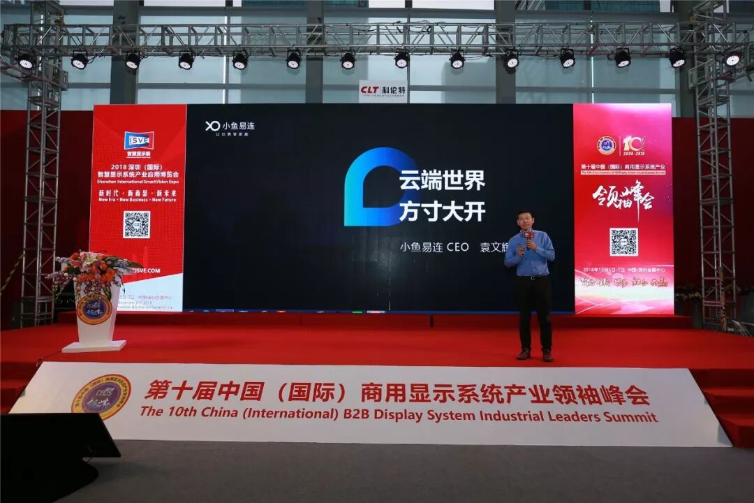 小鱼易连CEO袁文辉先生在其主题演讲《云端世界 方寸大开》中分享了小鱼易连是如何采用云视频的技术和AI的技术相结合的方式,将大屏产业的三大痛点——无线传屏、视频会议、大屏书写全部解决的。