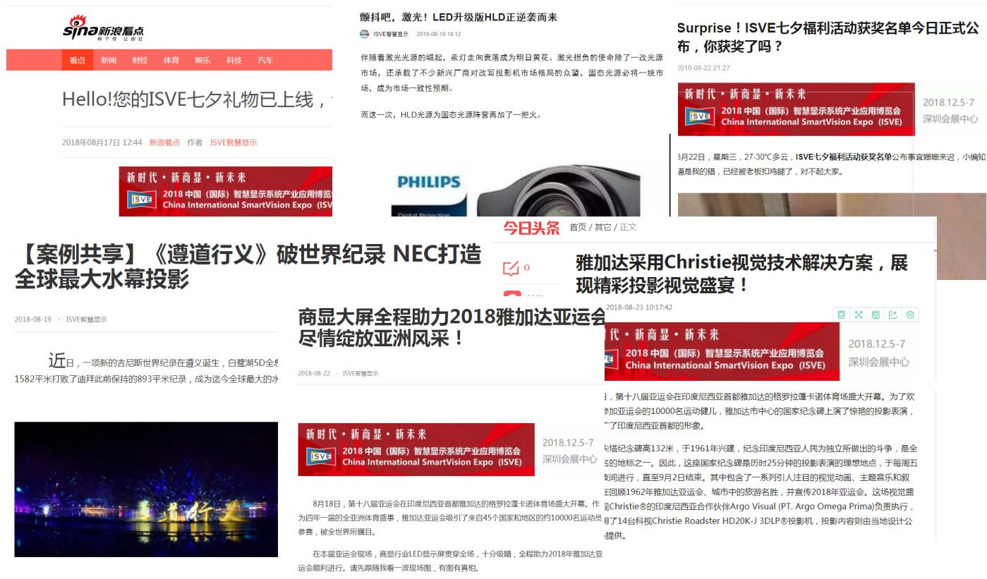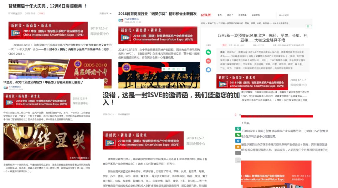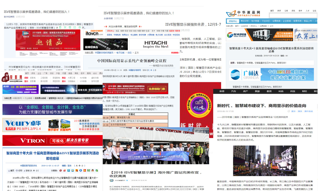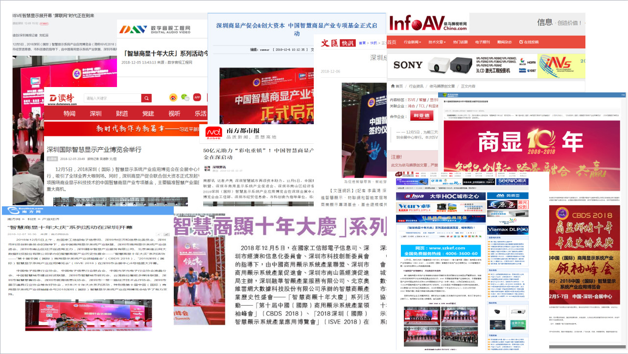 事实上,该项系列活动从展前到展中一直都受到众多行业媒体和大众媒体的广泛关注,其中网易、腾讯、新浪、今日头条、百度、凤凰网、一点资讯、东方头条、商显世界、数字音视工程网、中国投影网、深圳商报、深圳之窗、深圳特区报、屏显世界、深圳晚报、香港商报、深圳卫视《深视新闻》、广东卫视、读特新闻、数字标牌、依马狮视听网、南方都市报、文汇报、南方网、深圳新闻网、中华显示网、永泰安防网、LED屏显世界、中国数字视听网……等近百家行业媒体及大众媒体平台号对“商显十年大庆”系列活动进行了全方面、多角度、深层次的新闻报道。