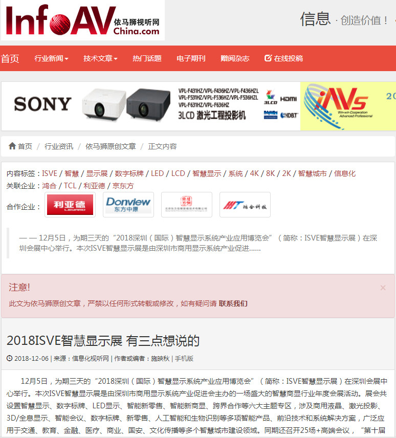 ISVE智慧显示展虽然是首届举办,展会规模算不上豪华,但是有不少商显界大品牌的加持,例如视源、鸿合、利亚德、海康、长虹、TCL、康冠、中新科技、华星光电、京东方、海信、仙视、信颐、惠科、友达光电等,让此次展会变得很有看头。