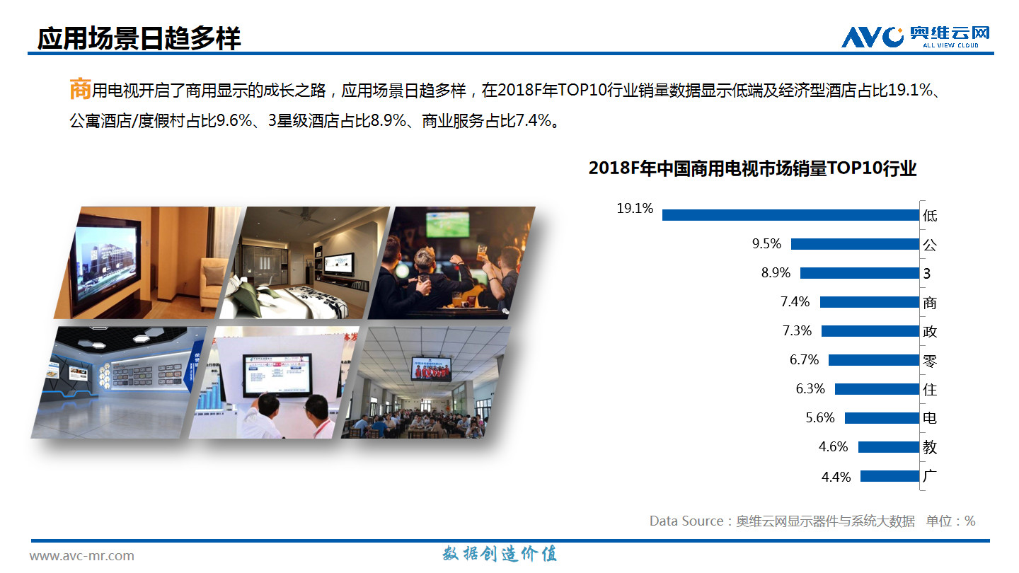 我们把商用电视叫做商用显示的起点。2004年左右,第一个商用产品就是商用电视。2002年左右,我们看到了如家,2008年有了奥运会的带动,使酒店配套升级,2018年商用电视的出货量非常大,每年有2-4%的增长,这个时候是商用电视发展的成熟期。