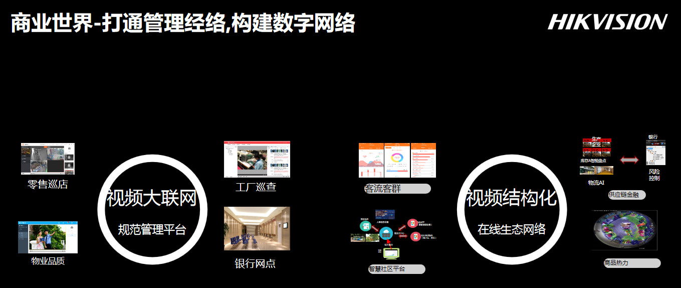 还有实体供应链和资金的管理,通过视频的数据,形成在线的生态网络,把我们原有的视频结构化,做一些应用,产生价值。