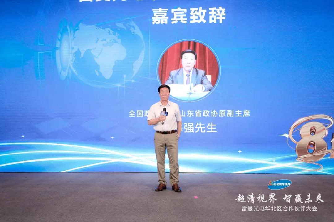 山东省政协原副主席李德强致辞:作为亲历者,我见证了从旧社会到新中国的时代变迁。科技给我们每个人的生活带来了翻天覆地的变化,近几年“超高清”成为热词频繁出现在大家的视野中,雷曼作为探索超高清显示的先驱,其超高清显示产品的画质和色彩令人震撼。作为中国民族品牌,雷曼光电坚持自主创新、产品品质、诚信经营并有所作为是值得肯定的。希望大家同舟共济、精诚团结,为中国超高清显示事业及各地区新基建加速发展助力。