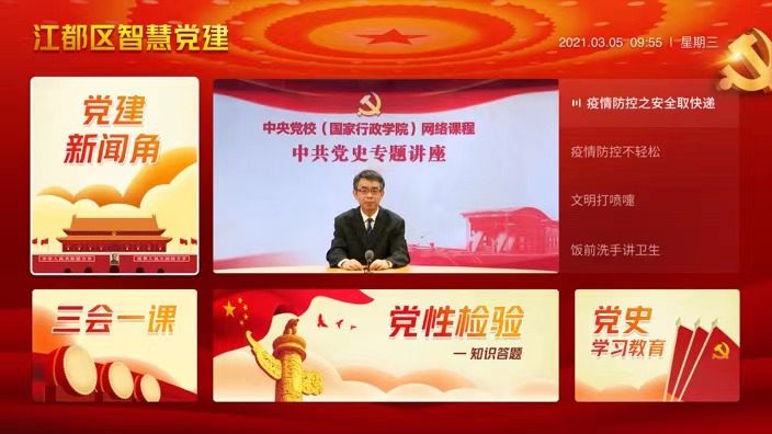 从年初的党员冬训会,到“七一勋章”颁授仪式,再到建党百年庆祝仪式,智慧党建解决方案已经在实践中为江都区各村村民所熟练掌握,并在智慧政务、便民服务等方面得到扩展应用。可以看出,部署“一村一屏”,应用智慧党建解决方案开展基层党史学习教育,对促进百姓宜居宜业,助力乡村振兴有着重大意义。