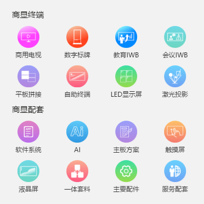 1. 信息导航。服务覆盖商用显示行业的各个领域,提供商用电视,数字标牌,教育IWB,会议IWB,平板拼接,LED显示屏,激光投影,软件系统,AI,主板方案,触摸屏,液晶屏,一体套料,主要配件,服务配套等。