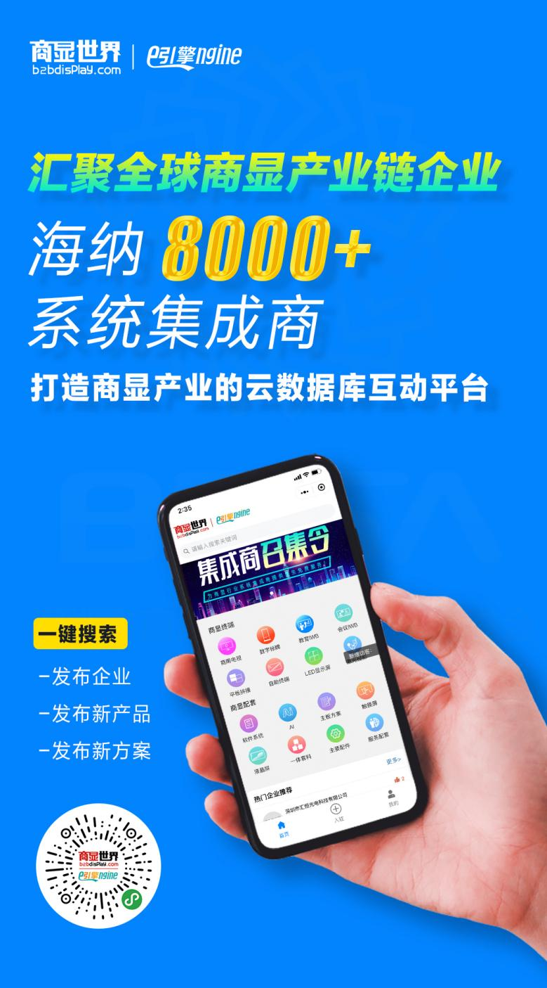 商显世界引擎是深圳市商用显示系统产业促进会和中国商用显示系统产业联盟以及商显世界媒体于2020年联合打造、颠覆传统、帮助企业上云合作经营的小程序,云集了8000+系统集成商,入驻企业近3000家,访问量高达33559次,涵括京东方、海康威视、TCL华星、友达、海信、大华、宇视、小米、鸿合、优色专显、视源、华鼎星、雷曼光电、朗国、容大彩晶、惠科、迅豹聚能、仙视、视新、康冠、研盛芯控、视美泰(排名不分先后)等诸多商显行业代表型企业,能极大程度上帮助商显企业整合行业海量资源,克服疫情期企业见面难、交流难、合作难等一系列合作经营难题,实现商显资源引流和世界数据共享,助力商显企业疫情期间上云成功精准、便捷合作经营发展。