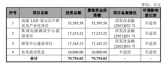 ![]() 招股书显示,视芯将募集资金7.98亿元运用围绕主营业务进行,全部用于公司主营业务相关的项目,本次募集资金到位后,投资以下LED显示芯片研发等项目: ![]()