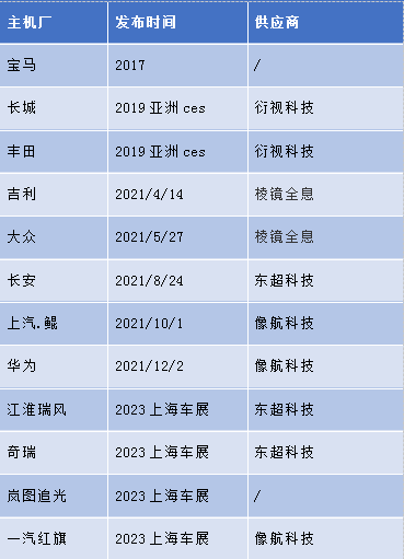 以下是已经采纳空中成像技术的主机厂名单,(按发布时间排序):