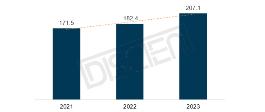 根据迪显咨询(DISCIEN)最新发布的《2023年中国大陆 LED小间距市场研究报告》显示,2023年中国大陆LED小间距&微间距终端市场销售额达207.1亿元,同比增长13.6%,销售量1395K㎡,同比增长25.1%;